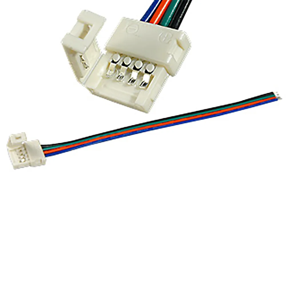 Разъем с фиксатором для подключения питания к светодиодным RGB лентам шириной 10мм. Одна сторона - 4-х контактный разъем, другая - провод 15см. Максимальный допустимый ток 4А. Не подавайте на разъем ток выше допустимого!
