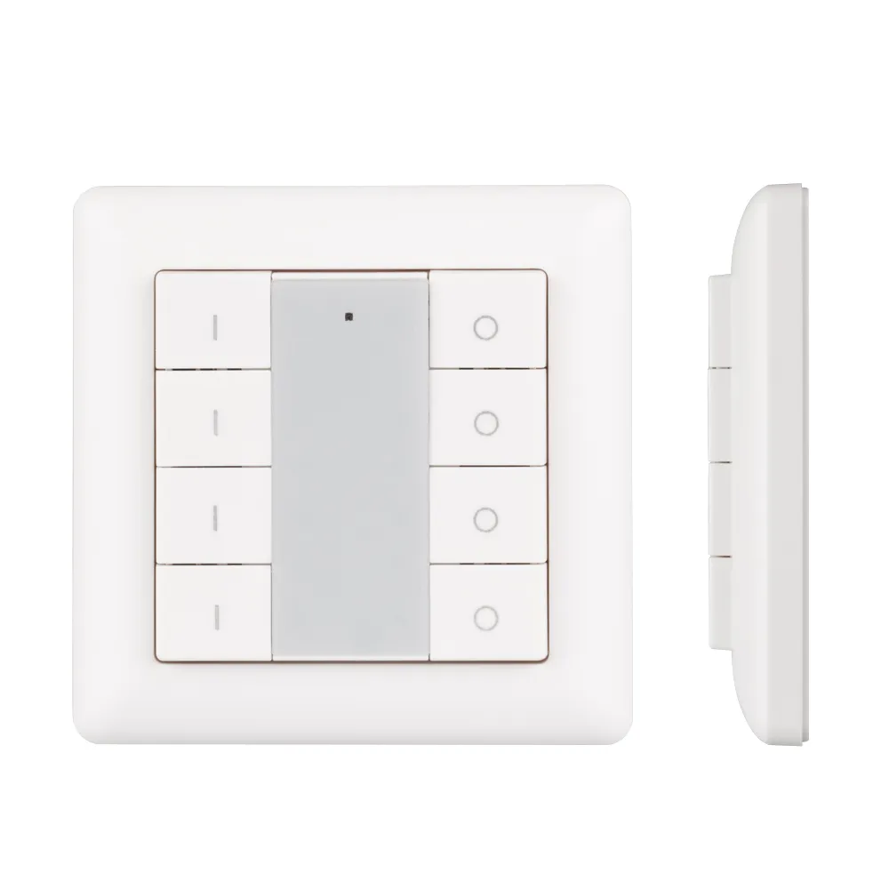 Универсальная многофункциональная накладная настенная панель для систем KNX. 8 клавиши. Материал - пластик. Цвет корпуса - белый. Питание от шины KNX DC 21-30V. Габариты 55.5х55.5х13 мм. Совместима с рамками европейских производителей (GIRA, JUNG, BERKER и т.п.). Стандартная рамка входит в комплект поставки.