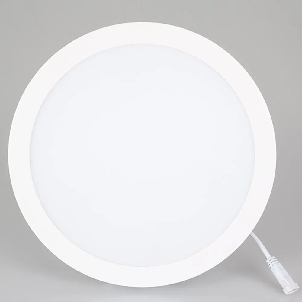 Светодиодная панель 24Вт, корпус белый IP40, круглый. Цвет ДНЕВНОЙ БЕЛЫЙ 4000K, св.поток 1920-2160лм, CRI(Ra)>80, угол 100°. Размер Ф225x26 мм, установка в отверстие 205 мм. Питание AC 180-240V, 24Вт, DC600mA 36...44V, драйвер в комплекте.