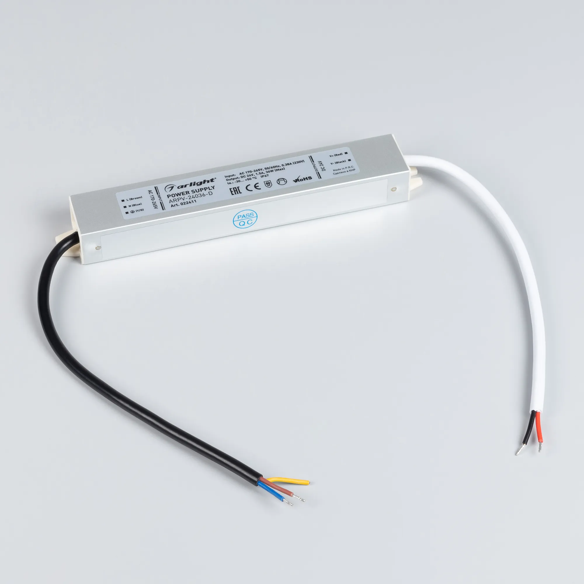 Источник напряжения с гальванической развязкой для светодиодных изделий. Входное напряжение 170-265 VAC. Выходные параметры: 24 В, 1,5 А, 36 Вт. Герметичный алюминиевый корпус IP 67. Рабочая температура -30…+50C⁰. Габаритные размеры длина 182 мм, ширина 30 мм, высота 20 мм. Гарантийный срок 3 года.