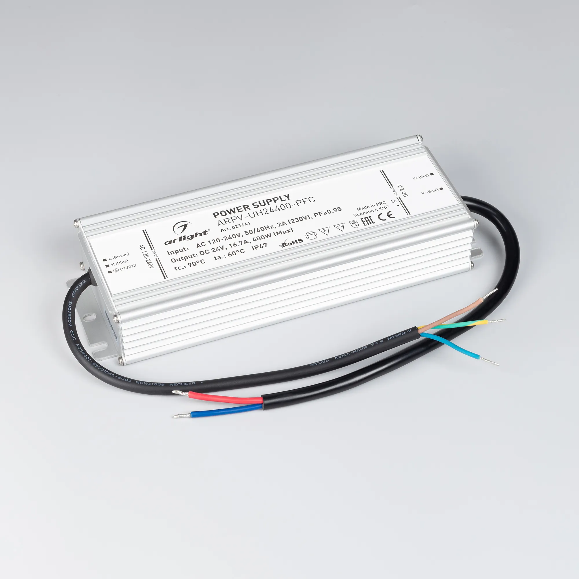 В магазине Мельковский Свет Вы можете купить "Блок питания ARPV-UH24400-PFC (24V, 16.7A, 400W) (Arlight, IP67 Металл, 7 лет)"