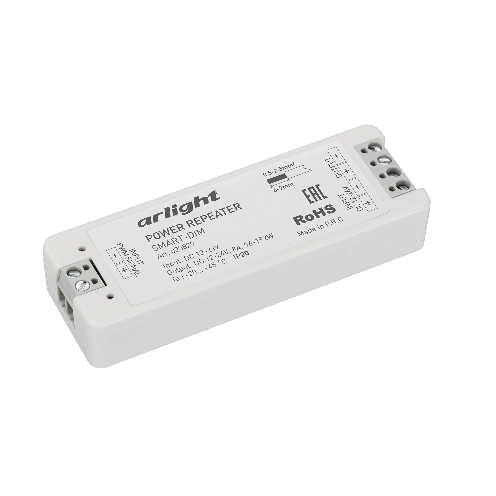 Наши специалисты знают все о продукции Arlight и с радостью помогут Вам выбрать комплектующие к товару "Усилитель SMART-DIM (12-24V, 1x8A) (Arlight, IP20 Пластик, 5 лет)", или другие товары из раздела "SMART Усилители [12-60V]".