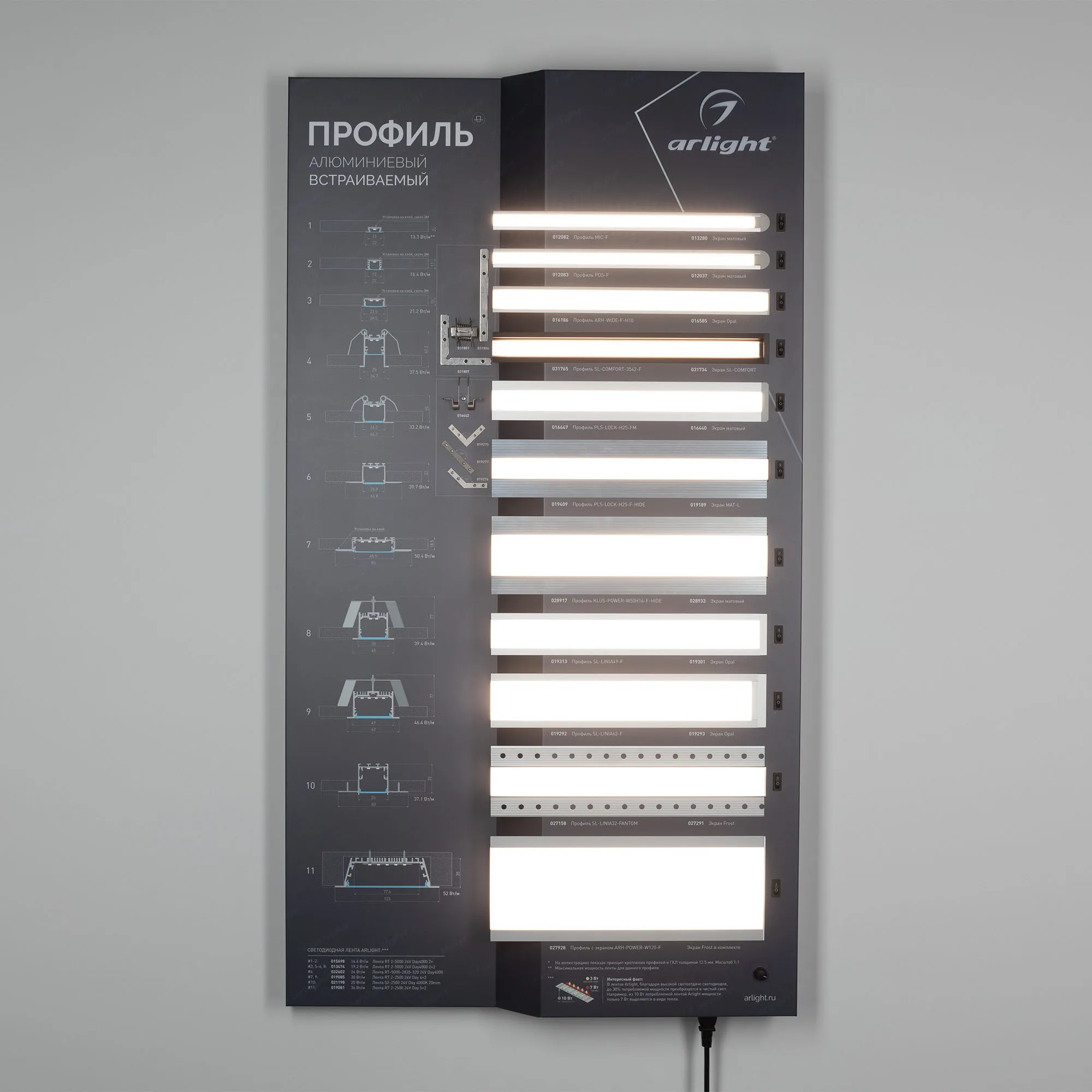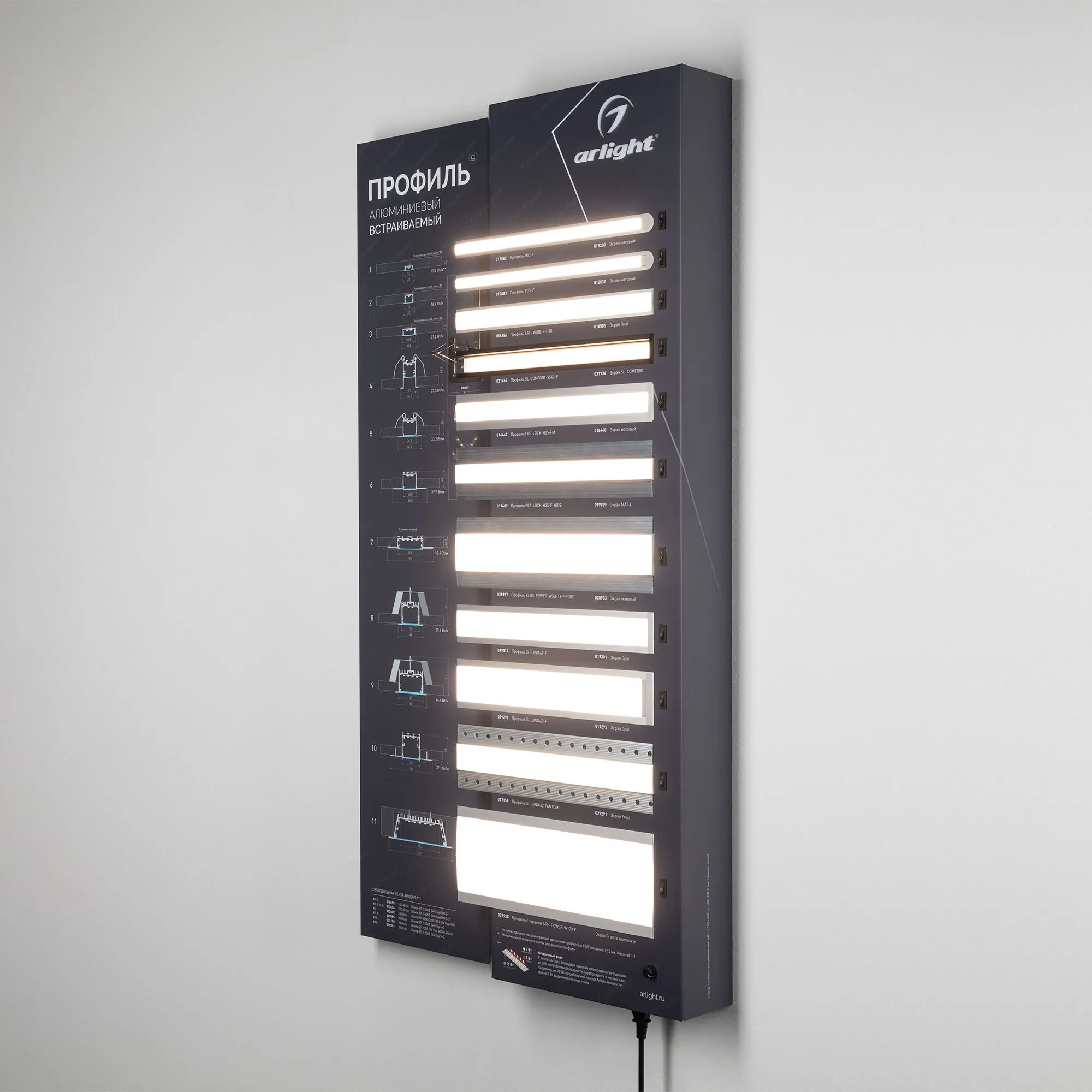 Наши специалисты знают все о продукции Arlight и с радостью помогут Вам выбрать комплектующие к товару "Стенд Профиль встраиваемый ARL-1100x600mm-02 (DB 3мм, пленка, лого) (Arlight, -)", или другие товары из раздела "Алюминиевые профили SL".