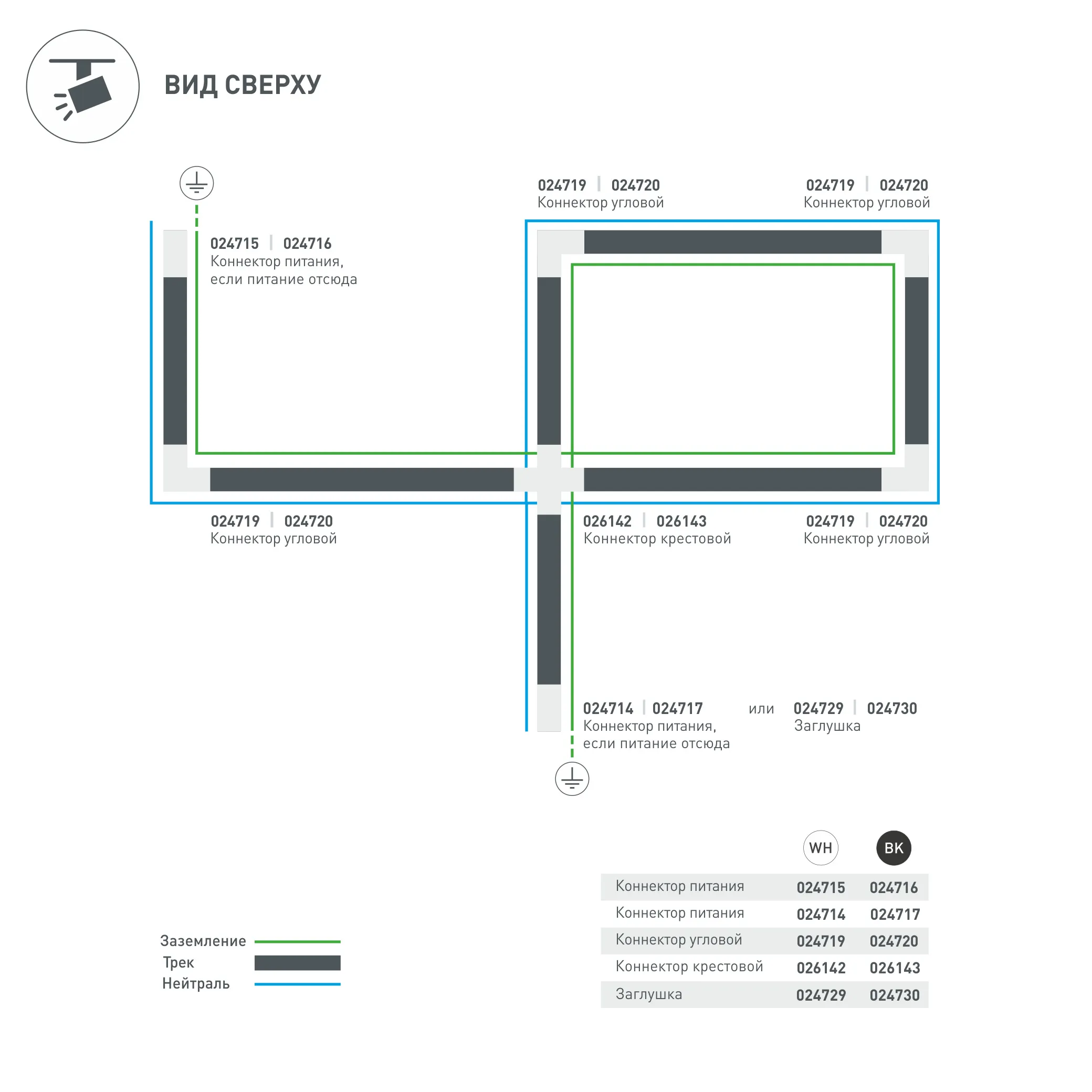 Угловой коннектор 90 градусов, питание по внутренней стороне. Цвет черный. 99х99х33 мм с контактами, 66х66х33 мм без контактов. При использовании с треками и аксессуарами другой серии возможно отличие по цвету.