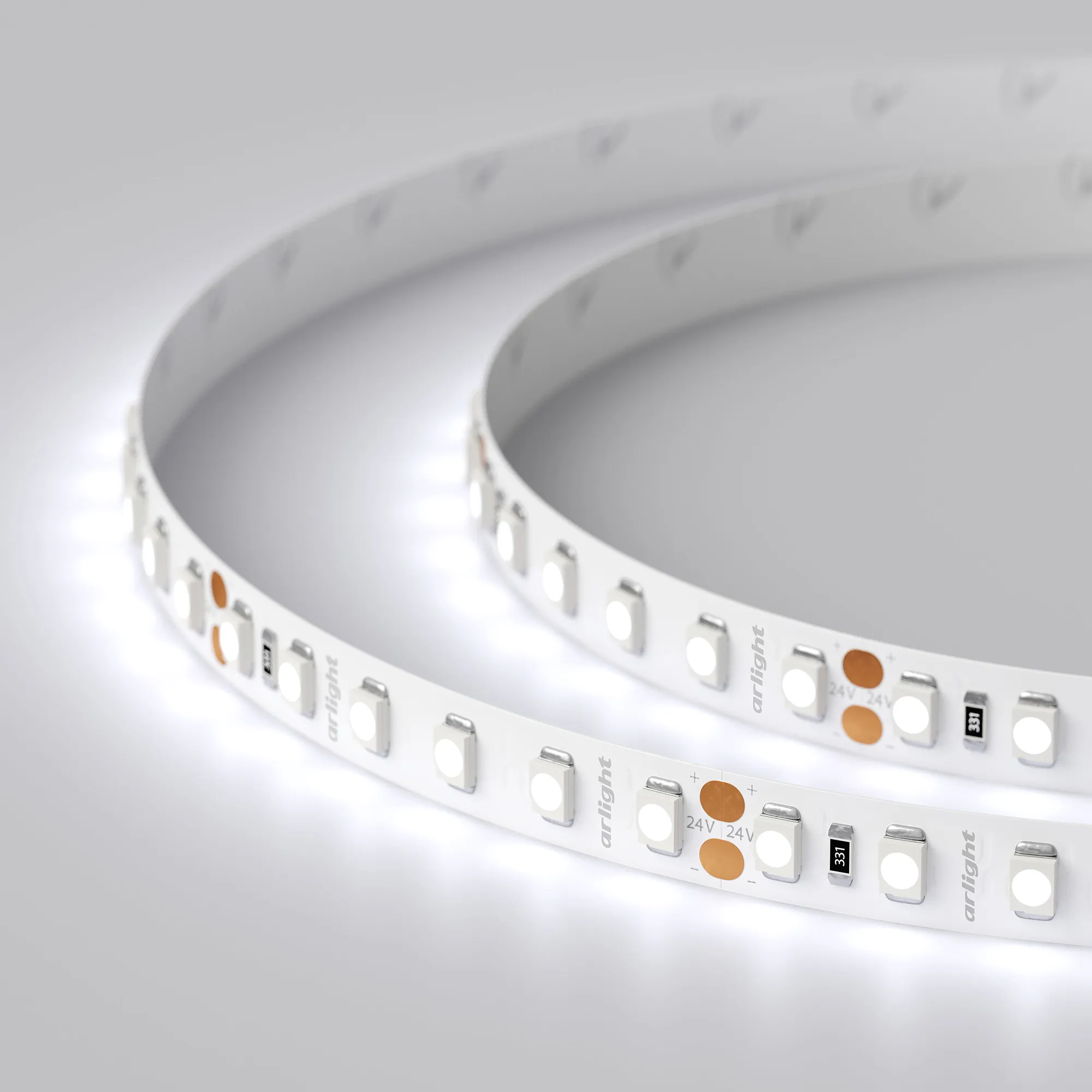 Лента светодиодная RT 2-5000 24V Cool 8K 2x (3528, 600 LED, LUX) (Arlight, 9.6 Вт/м, IP20)