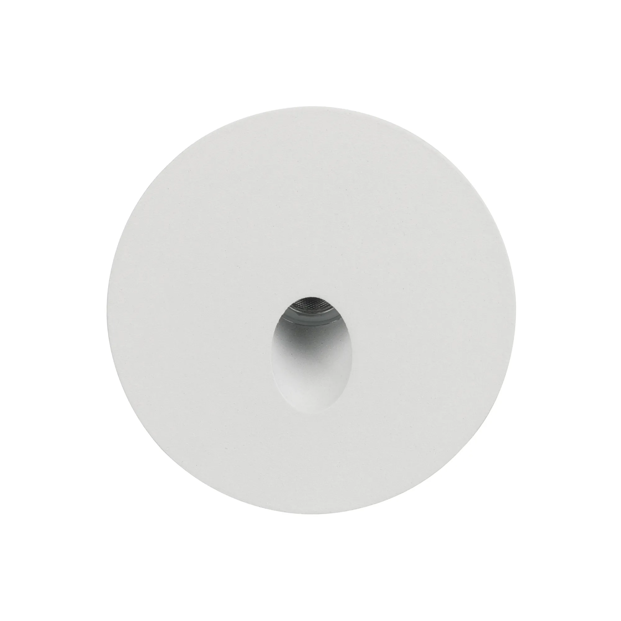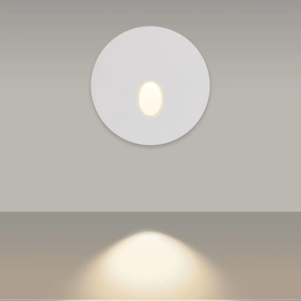 Светодиодный встраиваемый круглый светильник для стен, лестниц, 3Вт. Цвет ТЕПЛЫЙ 3000К, световой поток 120лм, угол 30°, CRI>80. Влагозащищенный корпус IP65, белый алюминий. Питание AC230V, мощность 3Вт. Размеры DxH 70x97мм (закладная часть Ø62x95мм).