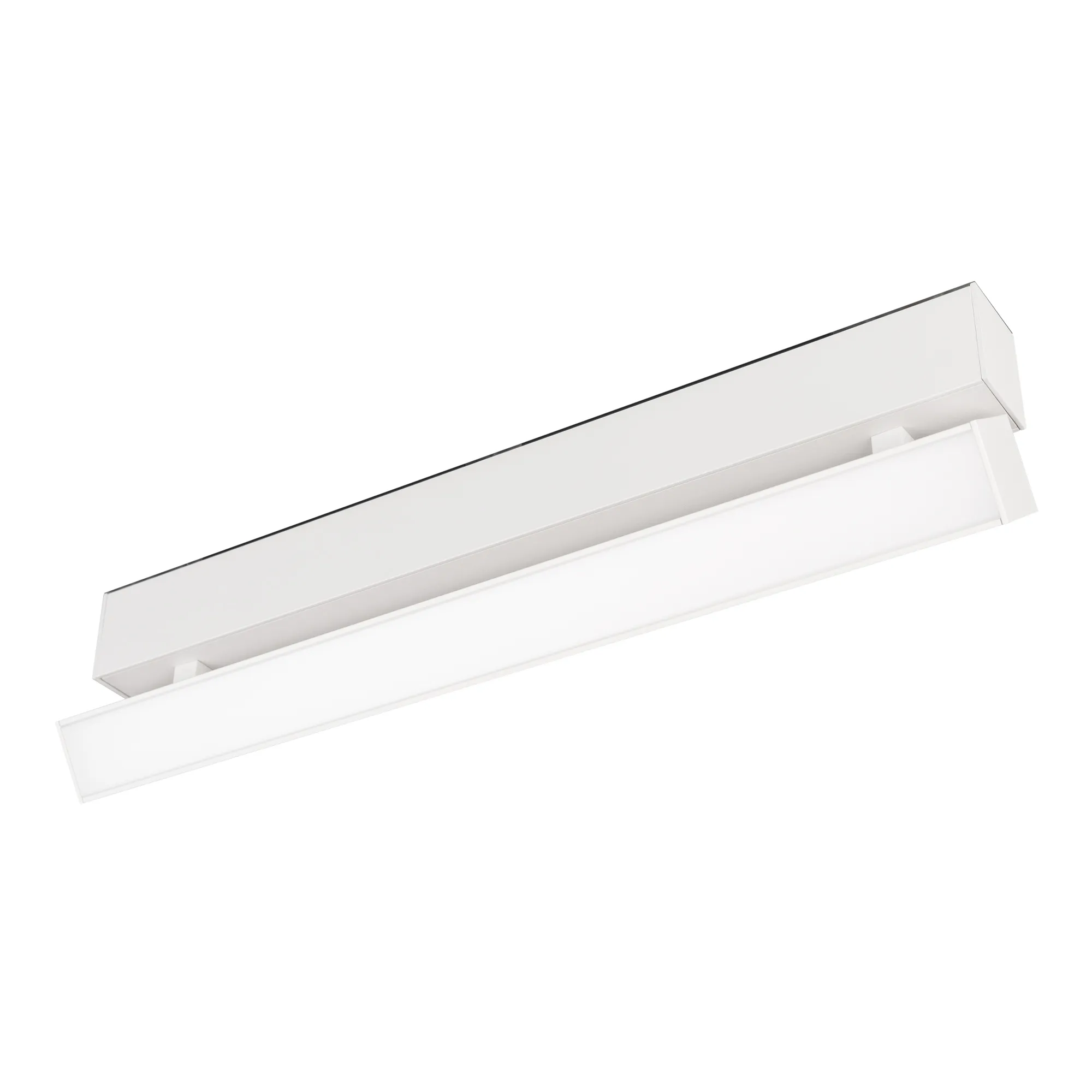 Светильник поворотный для магнитных треков шириной 45мм, 12Вт. Цвет свечения ДНЕВНОЙ 4000K, световой поток 1300лм, угол 100°, CRI>90. Корпус прямоугольный, металл, цвет белый, IP20. Размеры LxWxH 404x35x92.5мм. Входное напряжение DC24V, мощность 12Вт. Драйвер в комплект не входит. Диммируется только с 026407(1), 027633.