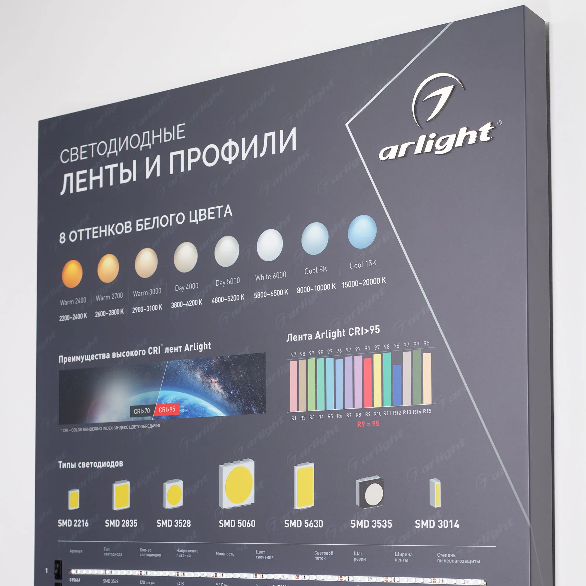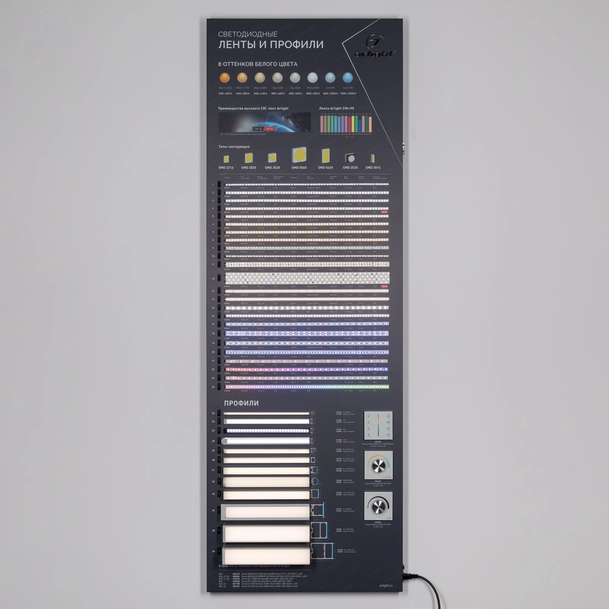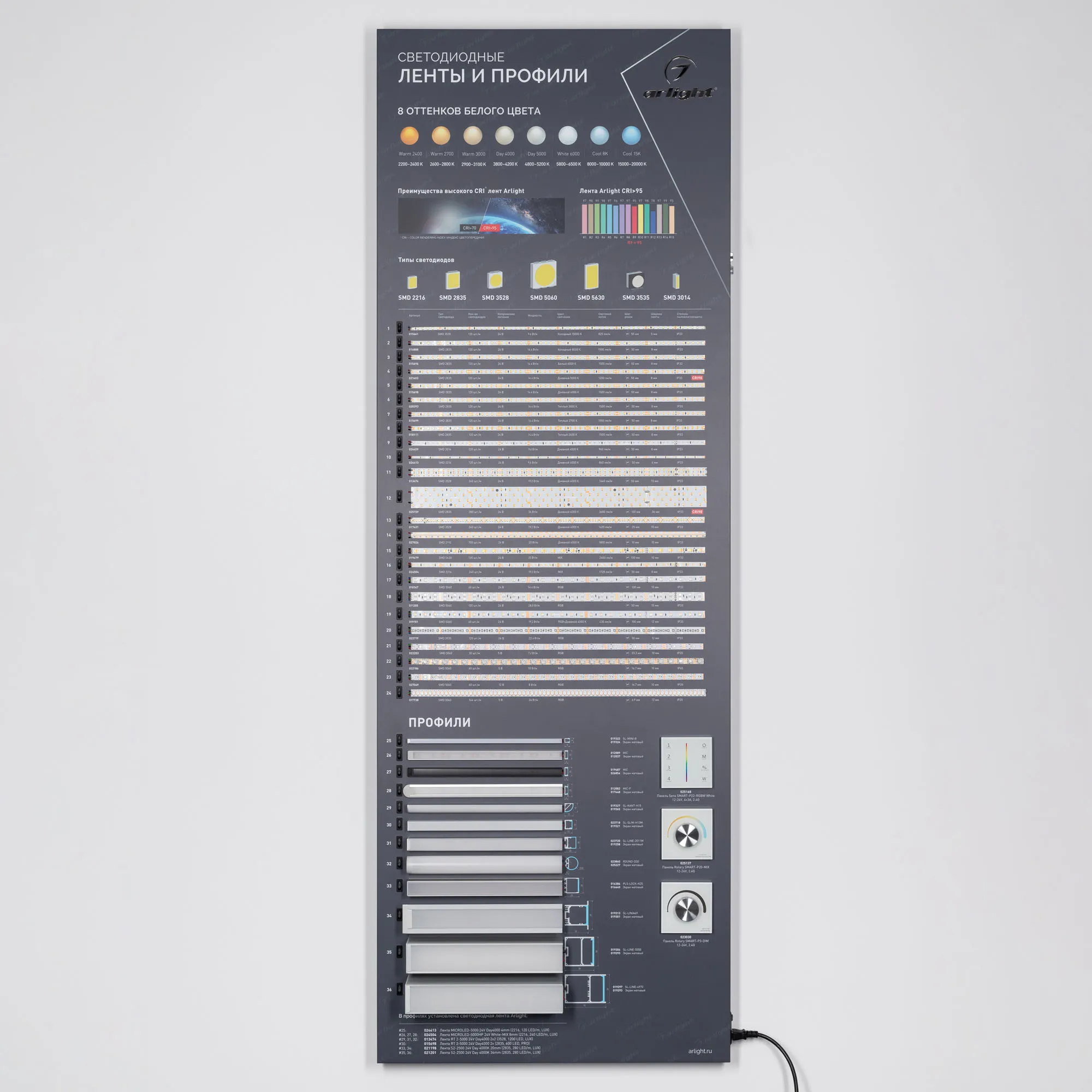 В магазине Мельковский Свет Вы можете купить "Стенд Ленты и Профиль RT-LUX-S1-1760x600mm (DB 3мм, пленка, подсветка) (Arlight, -)"