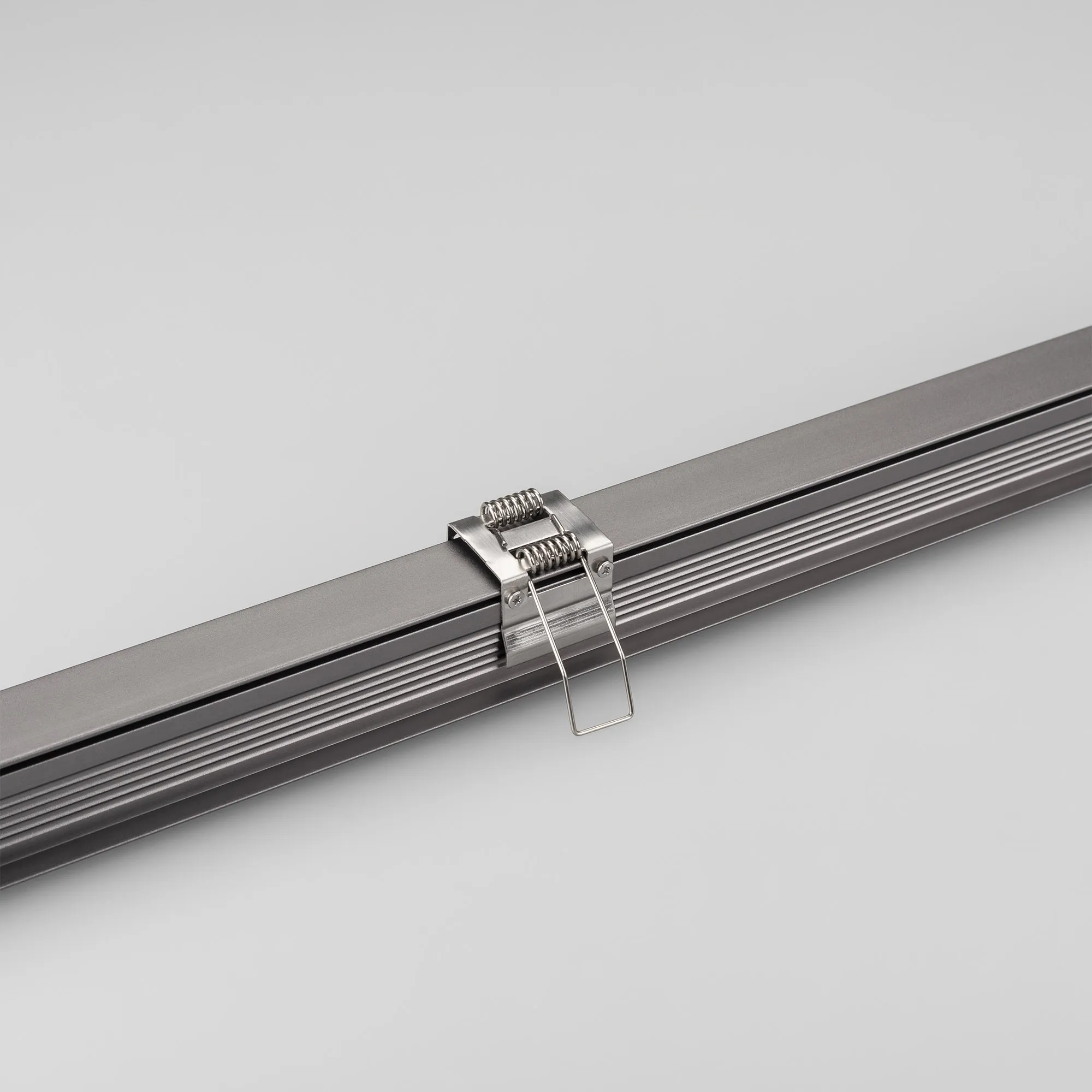 Встраиваемый светодиодный светильник для грунта и пола с монтажной чашей. Мощность 24 Вт, световой поток 1050 лм, цвет ТЕПЛЫЙ 3000К. CRI(Ra)>80, угол 120°. Прямоугольный влагозащищенный корпус IP67, серебристый алюминий. Экран PMMA. Выдерживает нагрузку 300 кг. Питание DC24V, 24 Вт. Размер ДxШxВ 1000x38x51 мм. Установка в отверстие ДxШxВ 1000x33.2x51 мм. Допускается регулирование светового потока ШИМ.