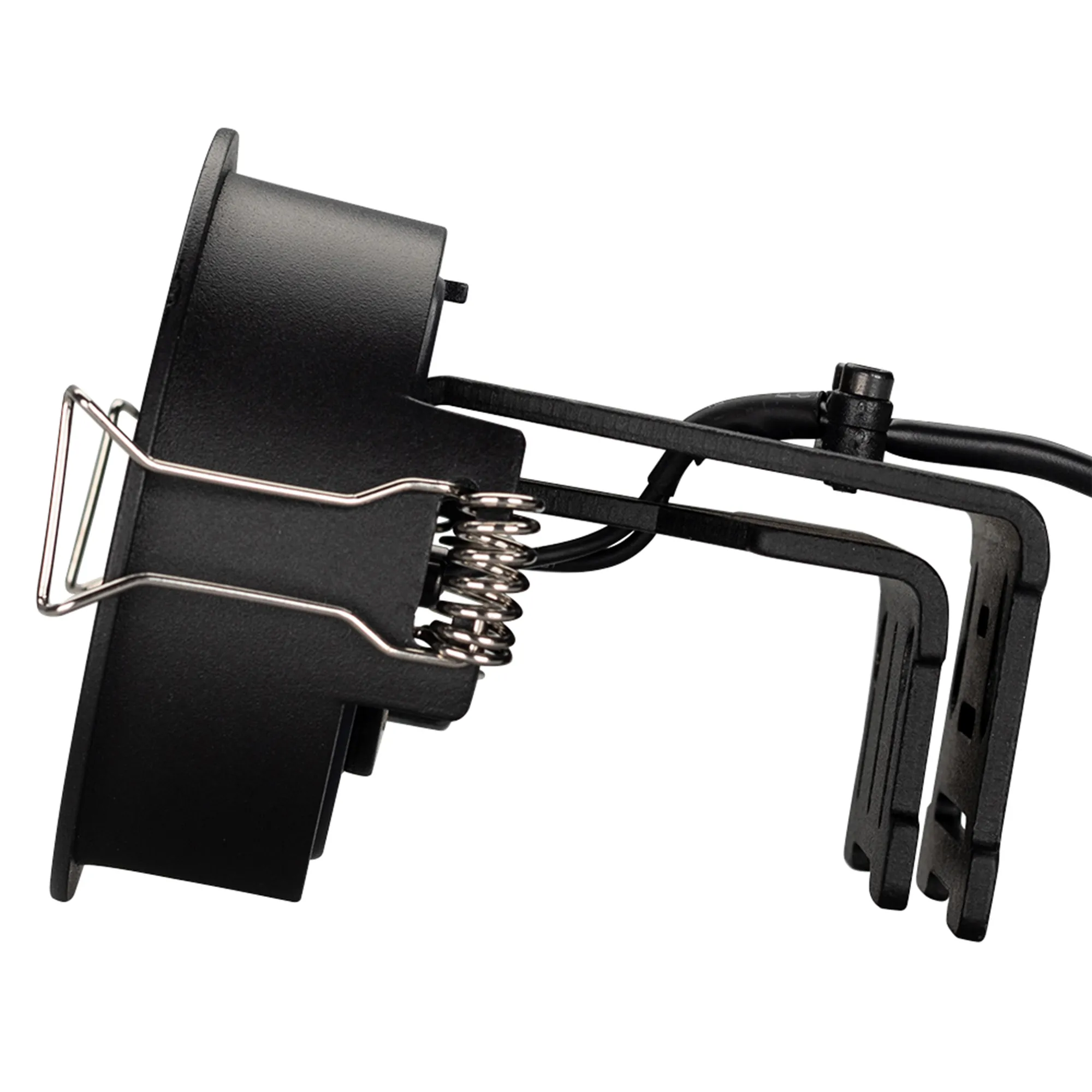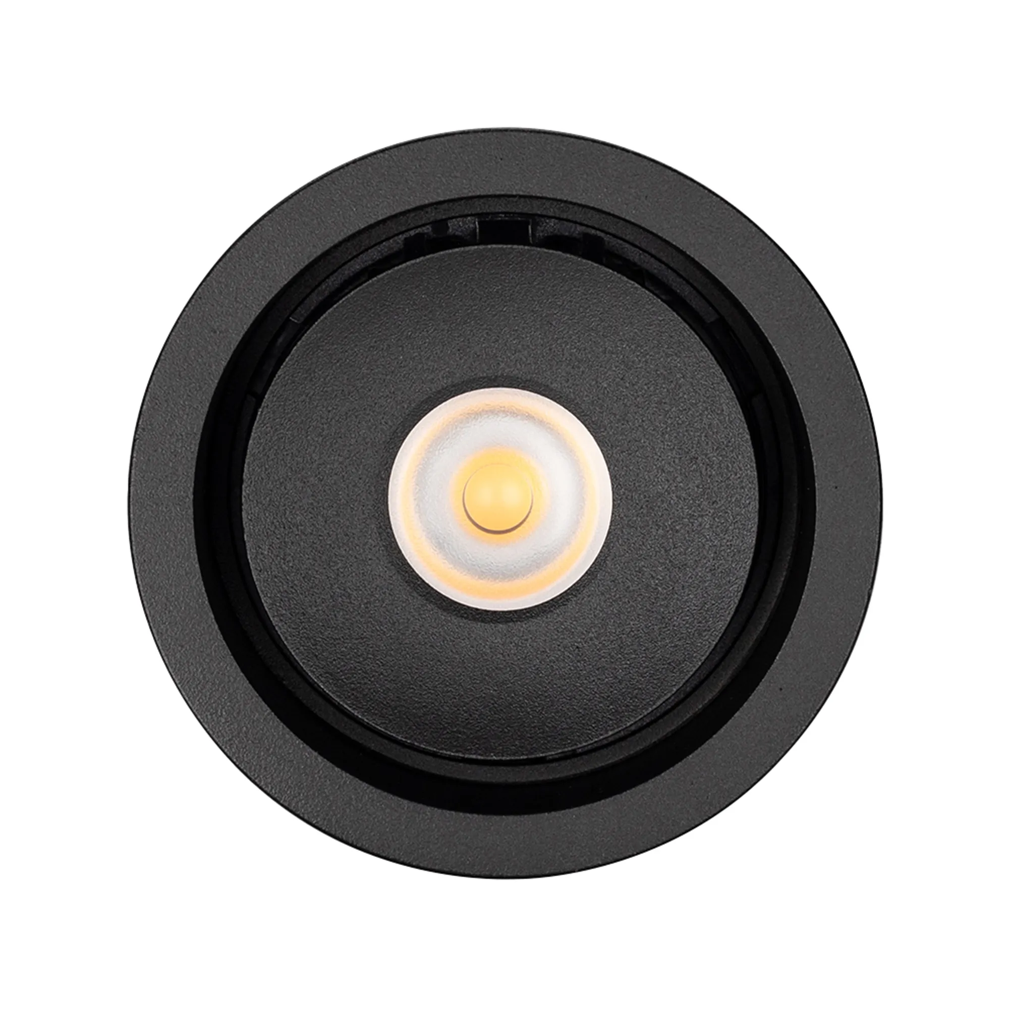 Встраиваемый поворотный светильник для потолка. Мощность 9W, цвет ТЕПЛЫЙ 3000K, св.поток 630лм, угол 45°, RA>90. Корпус черный. Питание AC230V. Размеры DxH Ø78x90мм. Установка в отверстие Ø70мм. Драйвер в комплекте (30-45V, 220mA).