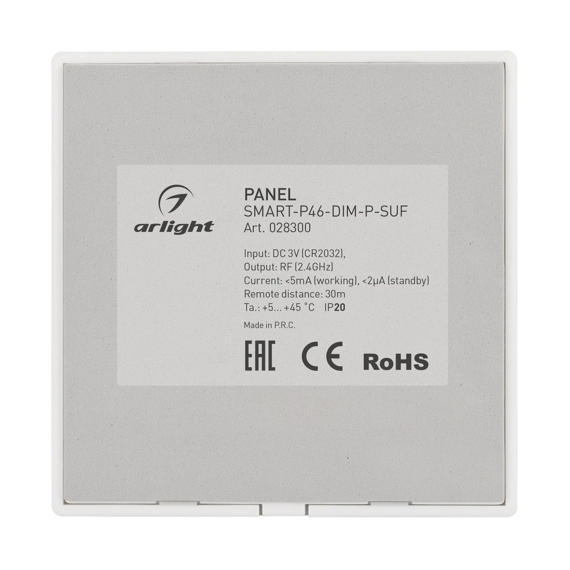 Панель SMART-P46-DIM-P-SUF (3V, 1 зона, Knob, 2.4G) (Arlight, Пластик)