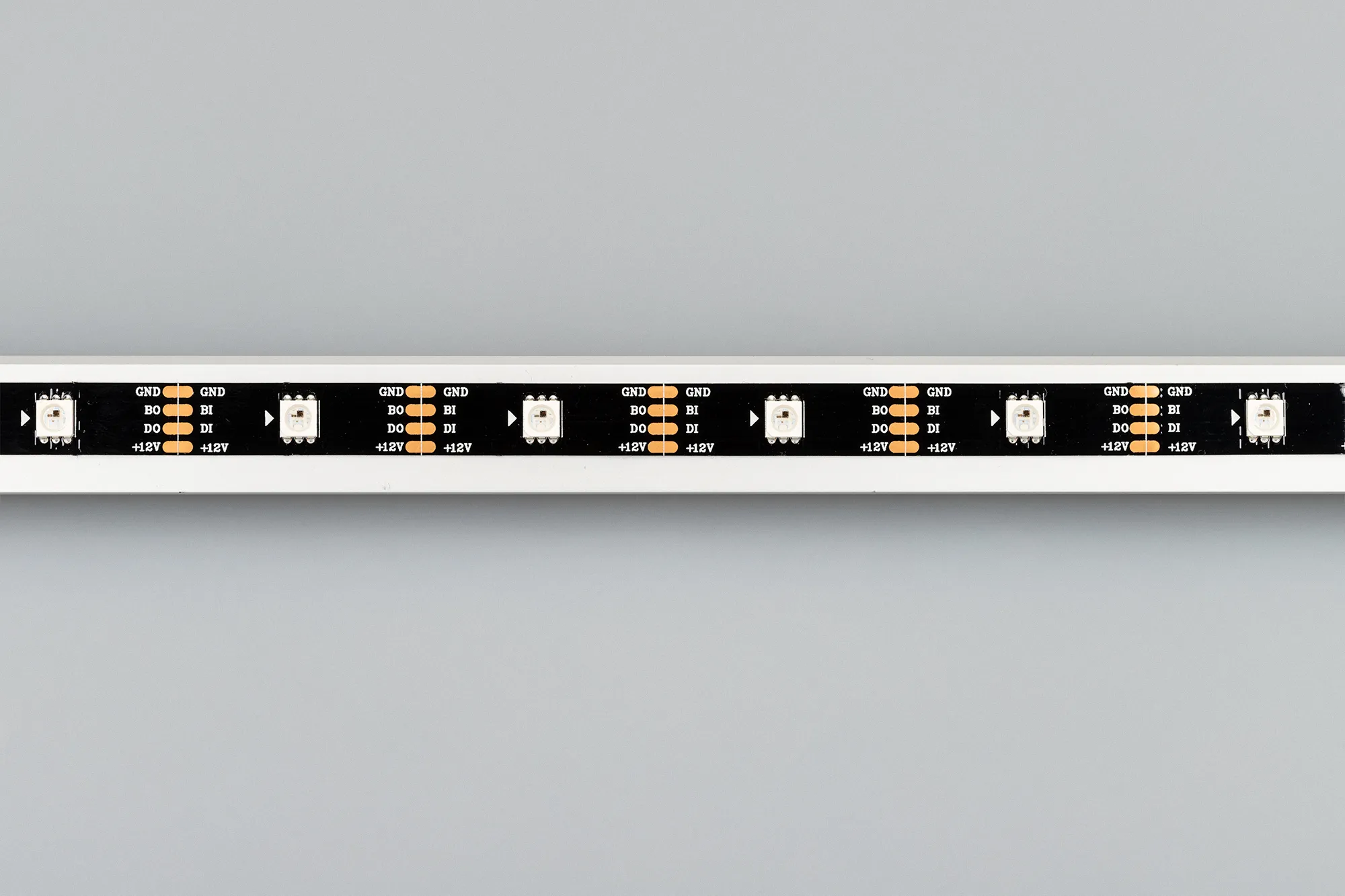 В магазине Мельковский Свет Вы можете купить "Лента светодиодная SPI-5000-RAM-5060-30 12V Cx1 RGB-Auto (Black 10mm, 4.8W/m, IP20) (Arlight, Открытый, IP20)"