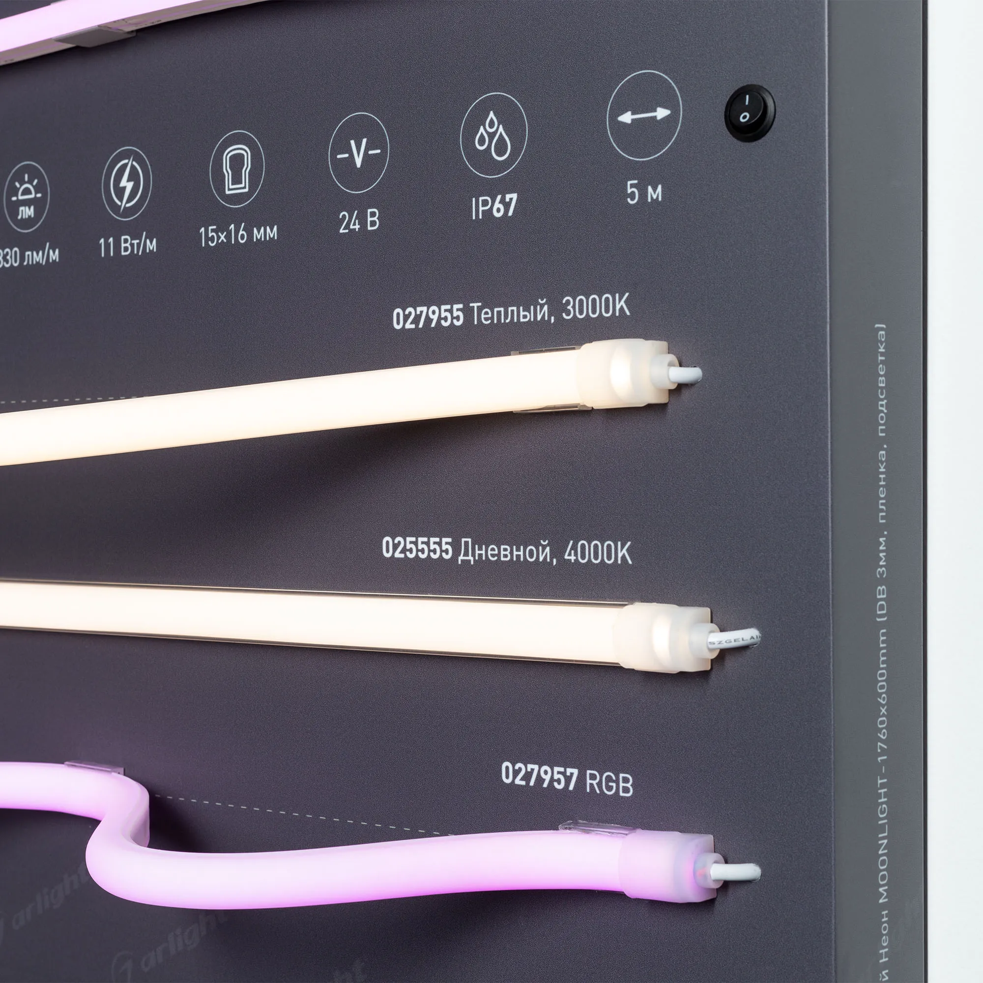 В магазине Мельковский Свет Вы можете купить "Стенд Гибкий Неон MOONLIGHT-1760x600mm (DB 3мм, пленка, подсветка) (Arlight, -)"