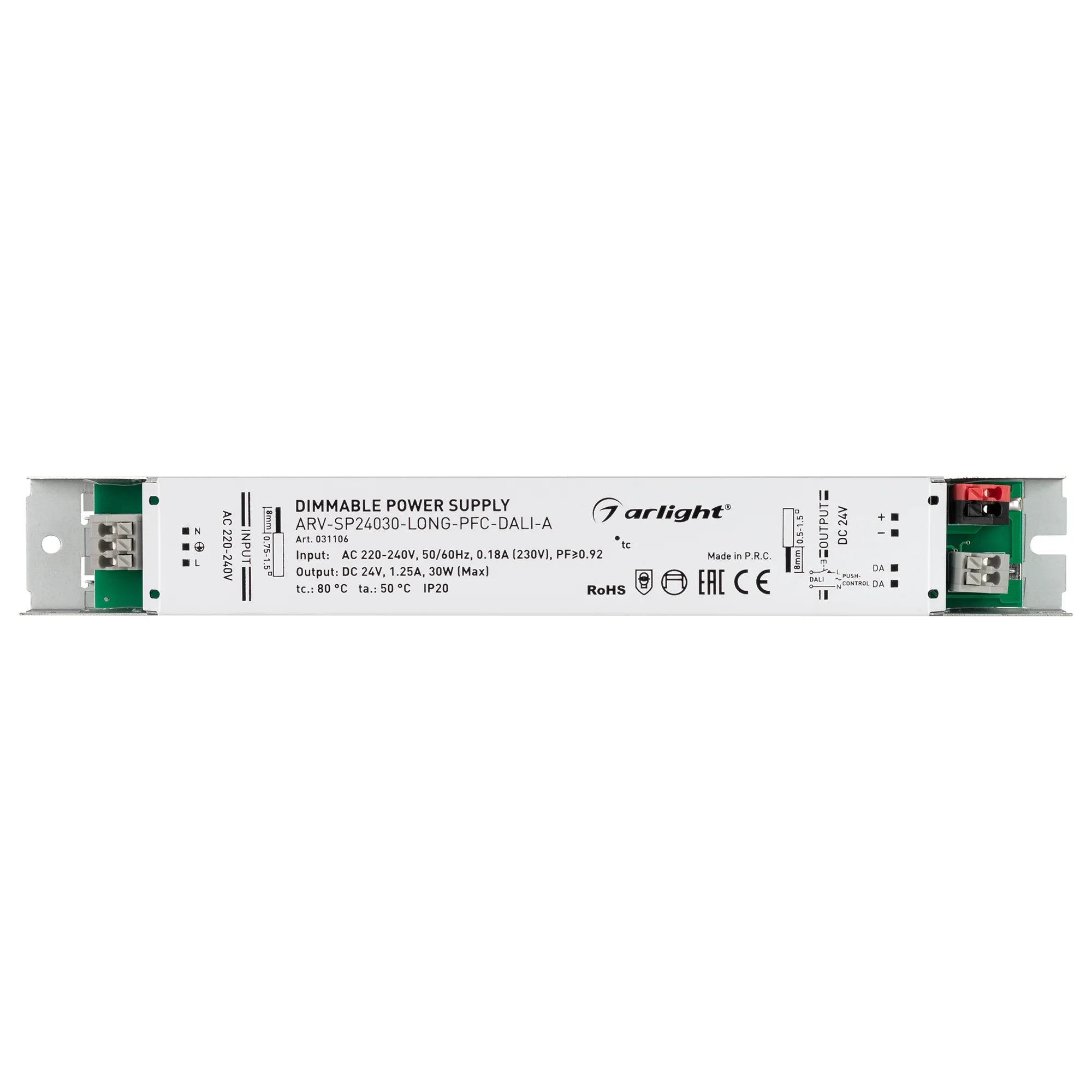 Блок питания ARV-SP24030-LONG-PFC-DALI-A (24V, 1.25A, 30W) (Arlight, IP20 Металл, 5 лет)