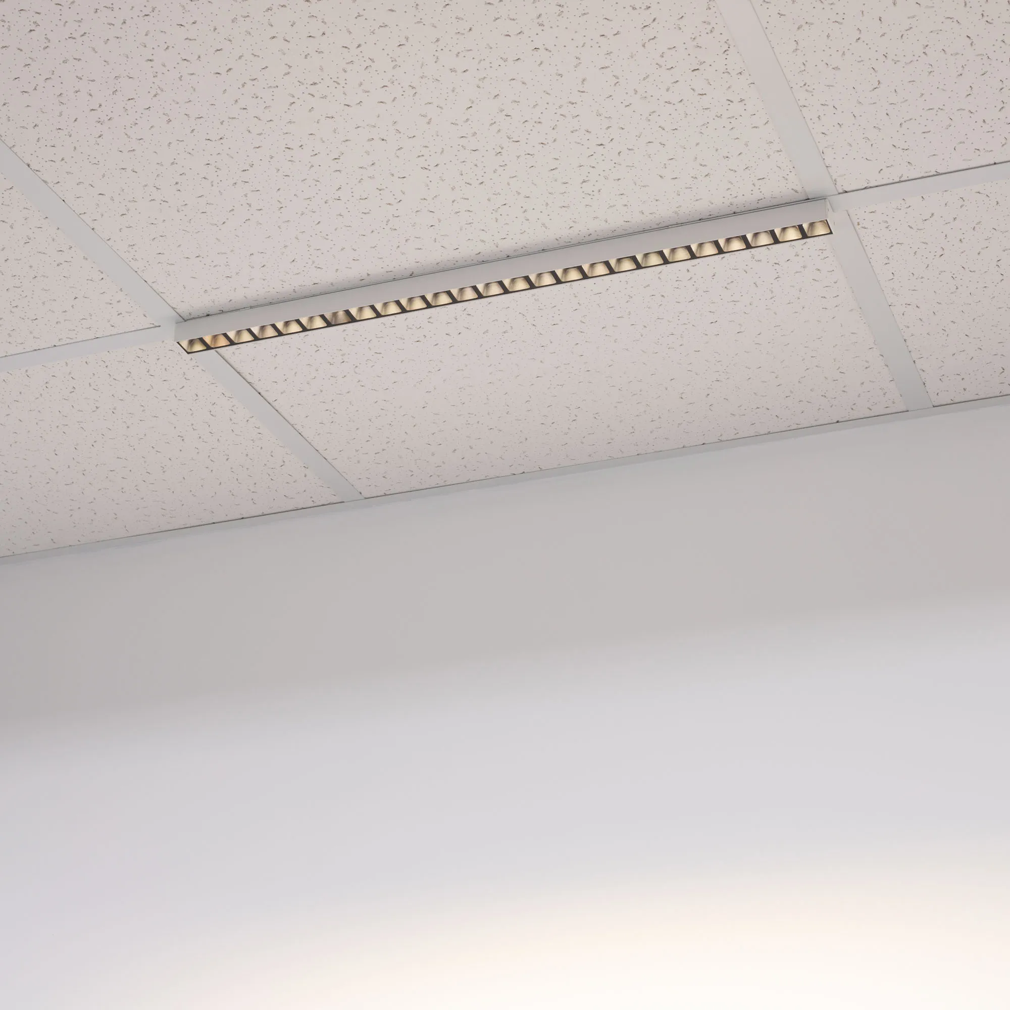 Светодиодный светильник для направляющих потолка Армстронг шириной 15 и 24 мм. Мощность 28 Вт, св. поток 2200 лм, 81 лм/Вт, дневной 4000K, CRI>80, угол 80°, напряжение питания 48 В. Белый квадратный корпус из алюминия, экран PC, степень защиты IP40. Размер: длина 1200 мм, ширина 25 мм, высота 28 мм. Монтаж накладной. Драйвер поставляется отдельно.