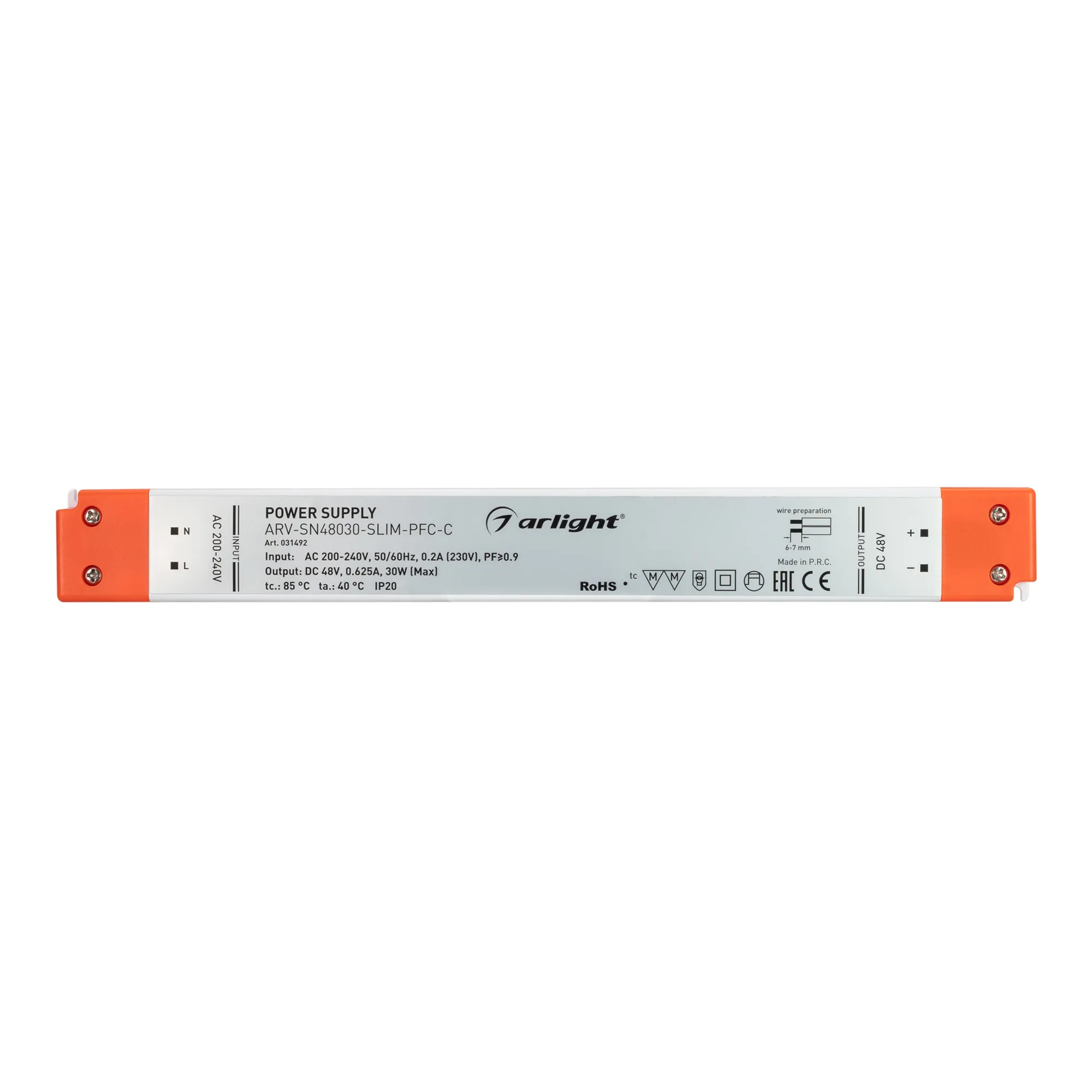 Блок питания ARV-SN48030-SLIM-PFC-C (48V, 0.62A, 30W) (Arlight, IP20 Пластик, 3 года)