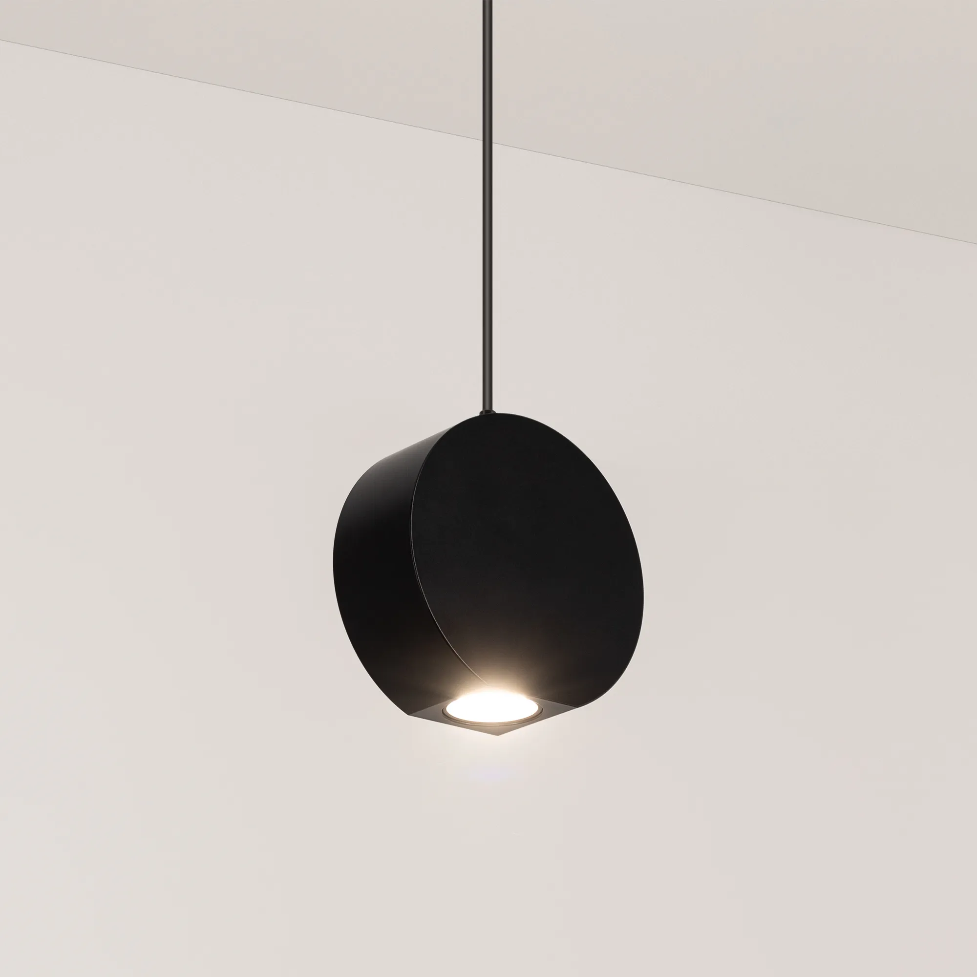 Подвесной светильник. Мощность 9 Вт, св. поток 650 лм, 73 лм/Вт, дневной 4000 K, CRI>80, угол 39°, напряжение питания 230 В. Черный круглый корпус из алюминия, экран , степень защиты IP40. Размер: диаметр 100 мм, высота 97 мм, ширина 40 мм. Монтаж подвесной, длина подвеса 1500мм, регулируемая. Габариты чаши Ø50x95 мм. Драйвер 28-42 В, 250 мА, пульсация <5%.