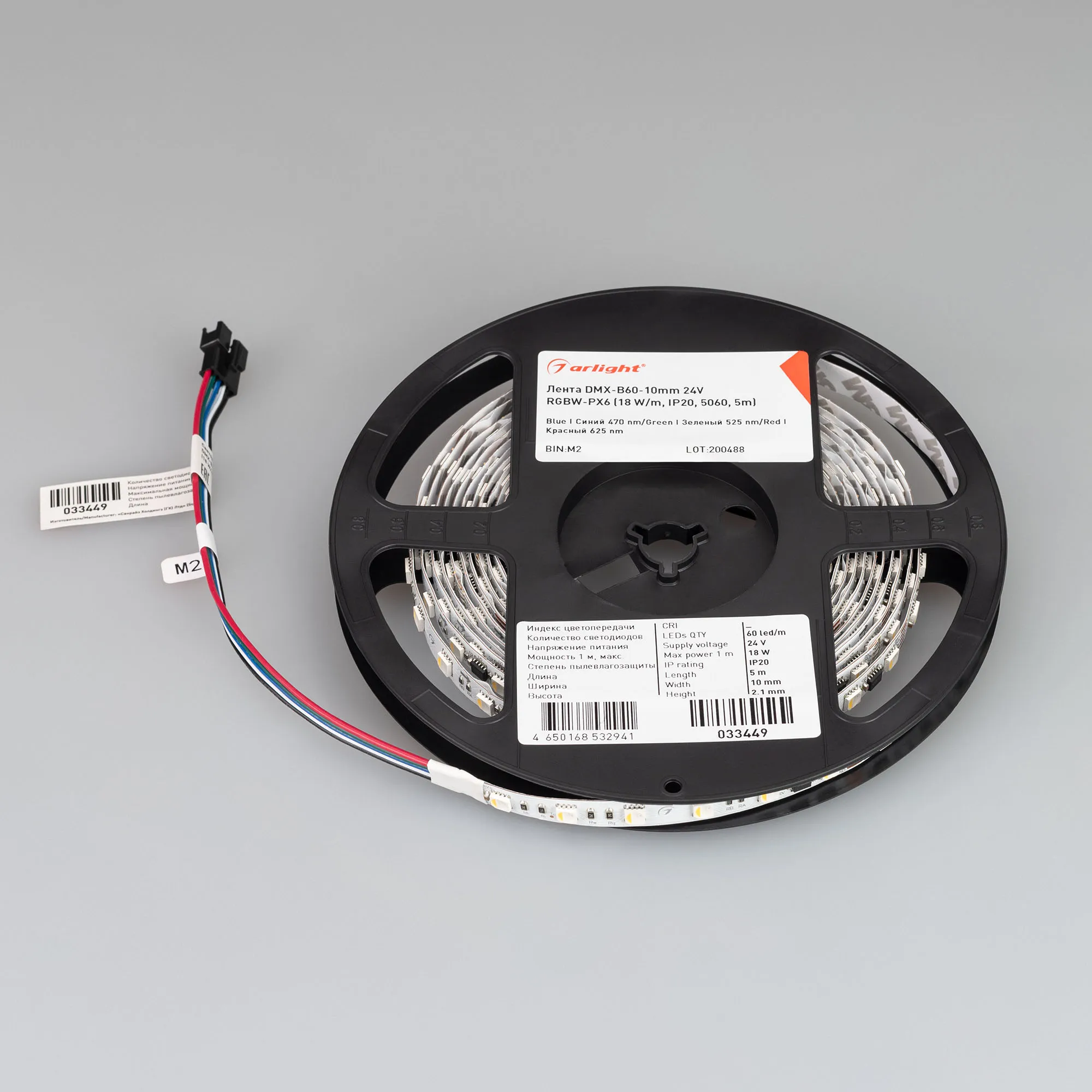 В магазине Мельковский Свет Вы можете купить "Лента светодиодная DMX-B60-10mm 24V RGBW-PX6 (18 W/m, IP20, 5060, 5m) (Arlight, -)"