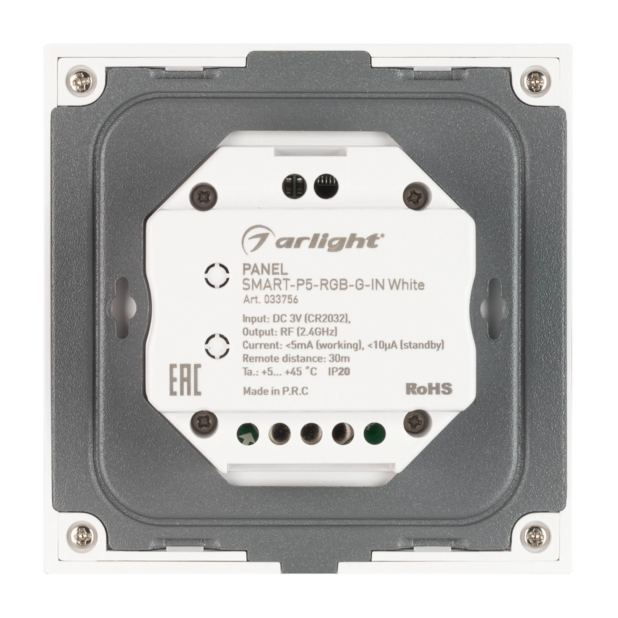 Панель SMART-P5-RGB-G-IN White (3V, Rotary, 2.4G) (Arlight, IP20 Пластик, 5 лет)