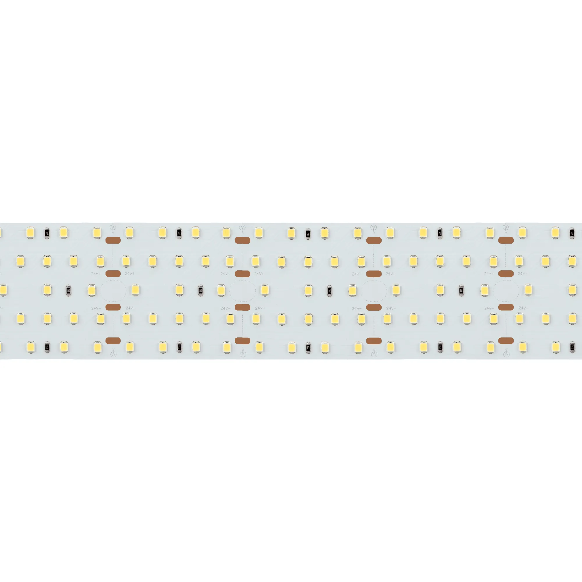 Светодиодная широкая лента S2 серии A420 с монтажными отверстиями. Светодиоды SMD 2835, 420 шт/м, белая плата шириной 52 мм, скотч 3M. Цвет ТЕПЛЫЙ 3000K, индекс цветопередачи CRI>85, угол 120°. Питание 24 В, мощность 30 Вт/м (75 Вт на 2.5 м). Размеры 2500x52x1.5 мм. Мин. отрезок 50 мм, 21 светодиод. Цена за 1 м.