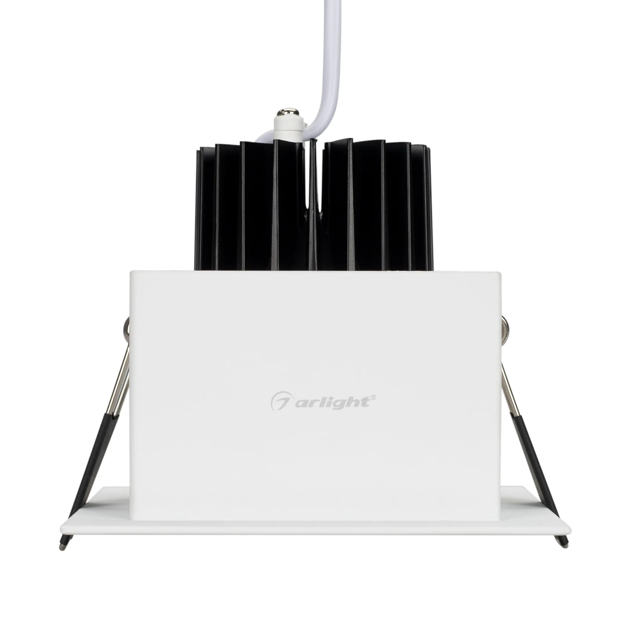 Встраиваемый карданный светильник. Угол 36° / 9Вт / ДНЕВНОЙ БЕЛЫЙ 4000K / 840лм, CRI>80. Корпус из белого алюминия. Питание AC180-240V, 9Вт, в комплекте драйвер 200mA 30-45V. Размеры LxWxH: 100х100x85мм, отверстие для установки 85x85мм.