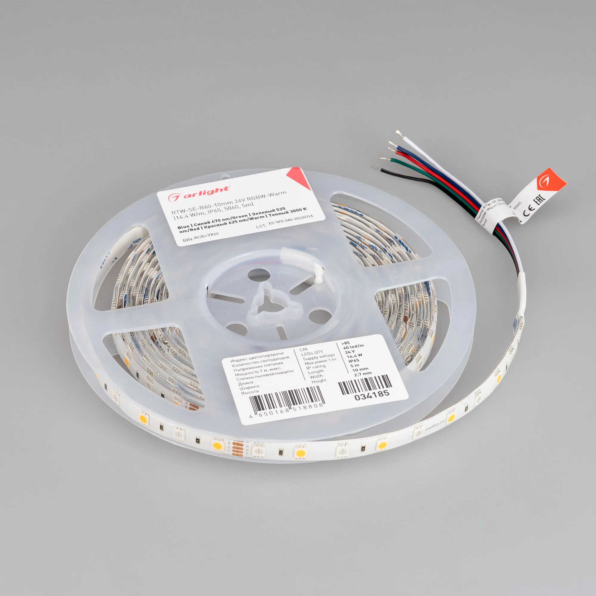 Лента светодиодная RTW-SE-B60-10mm 24V RGBW-Warm (14.4 W/m, IP65, 5060, 5m) (Arlight, Открытый)