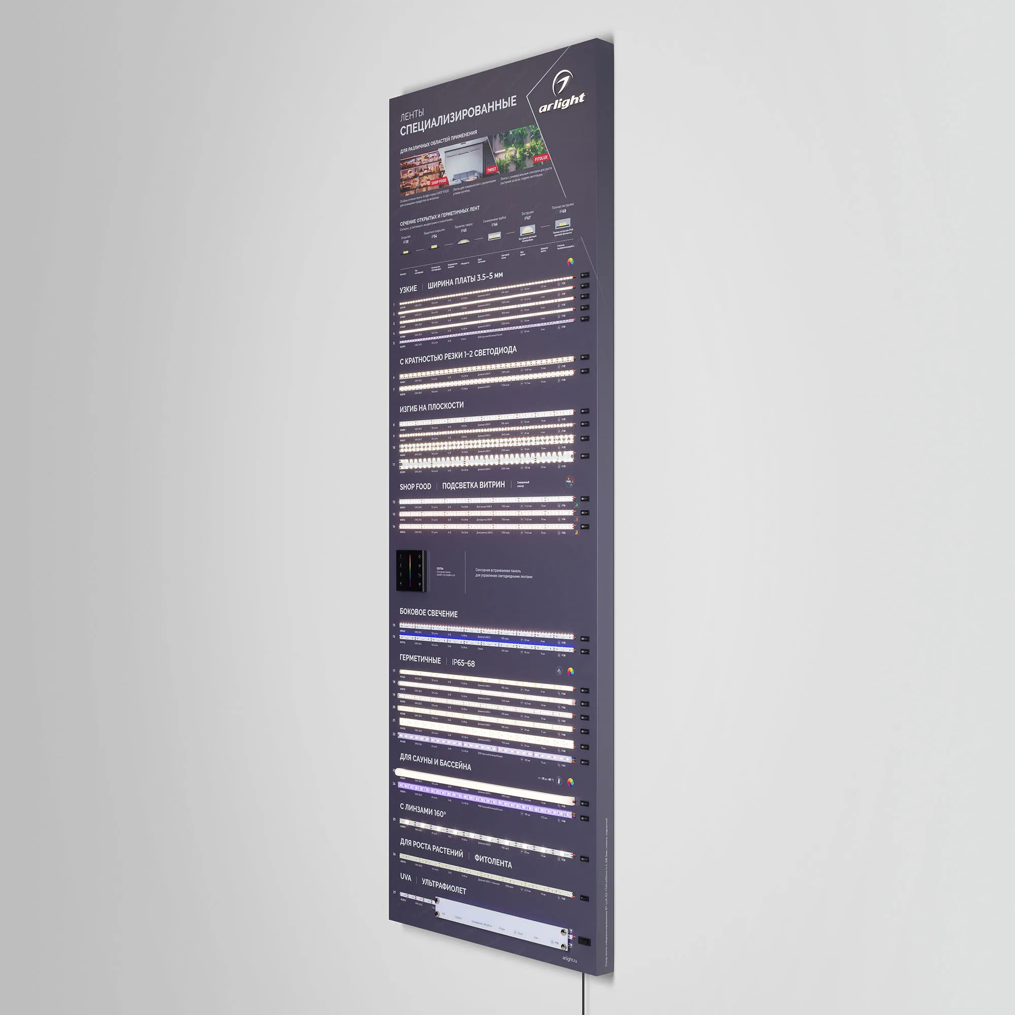 Стенд светодиодные ленты Специализированные - узкие, герметичные, волна и другие 12/24В, 30 моделей (ряды #60-#89).