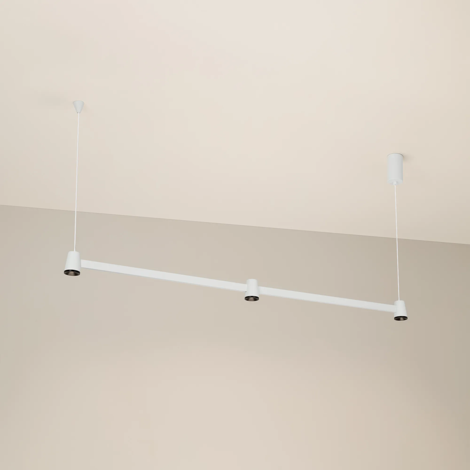 Подвесной светильник. Мощность 16 Вт, св. поток 1010 лм, 63 лм/Вт, дневной 4000 K, CRI>90, угол 35°, напряжение питания 230 В. Белый корпус из алюминия, степень защиты IP20. Размер: длина 1039 мм, ширина 40 мм, высота 55 мм, размер чаши: диаметр 50 мм, высота 90 мм. Монтаж подвесной, длина подвеса 1300 мм. Драйвер 27-38 В, 500 мА, пульсация <1%.