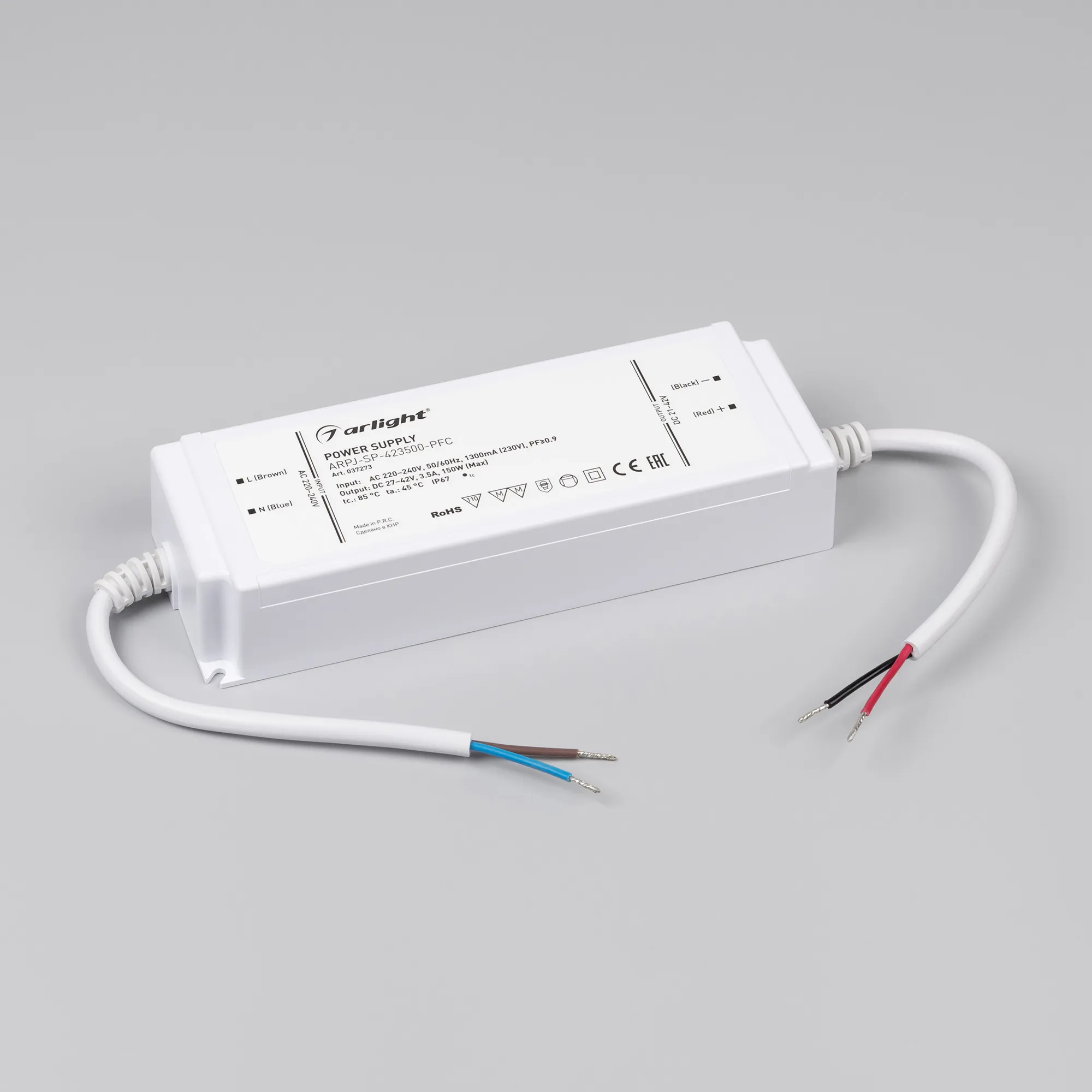 В магазине Мельковский Свет Вы можете купить "Блок питания ARPJ-SP-423500-PFC (150W, 27-42V, 3.5A) (Arlight, IP67 Пластик, 5 лет)"