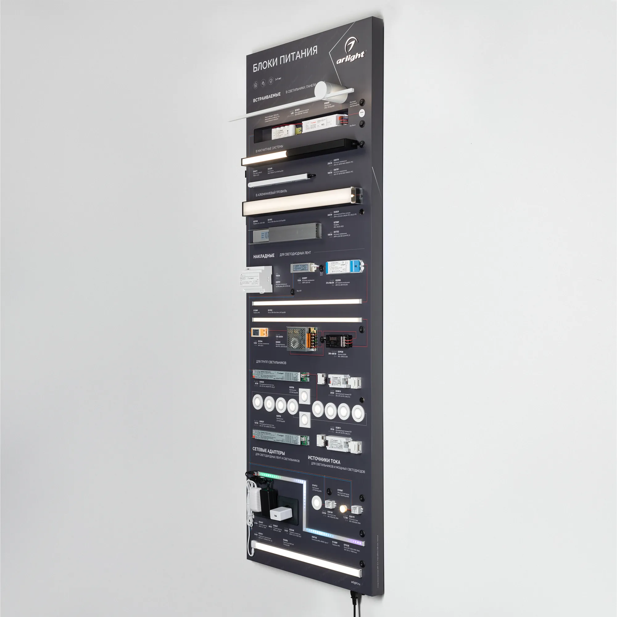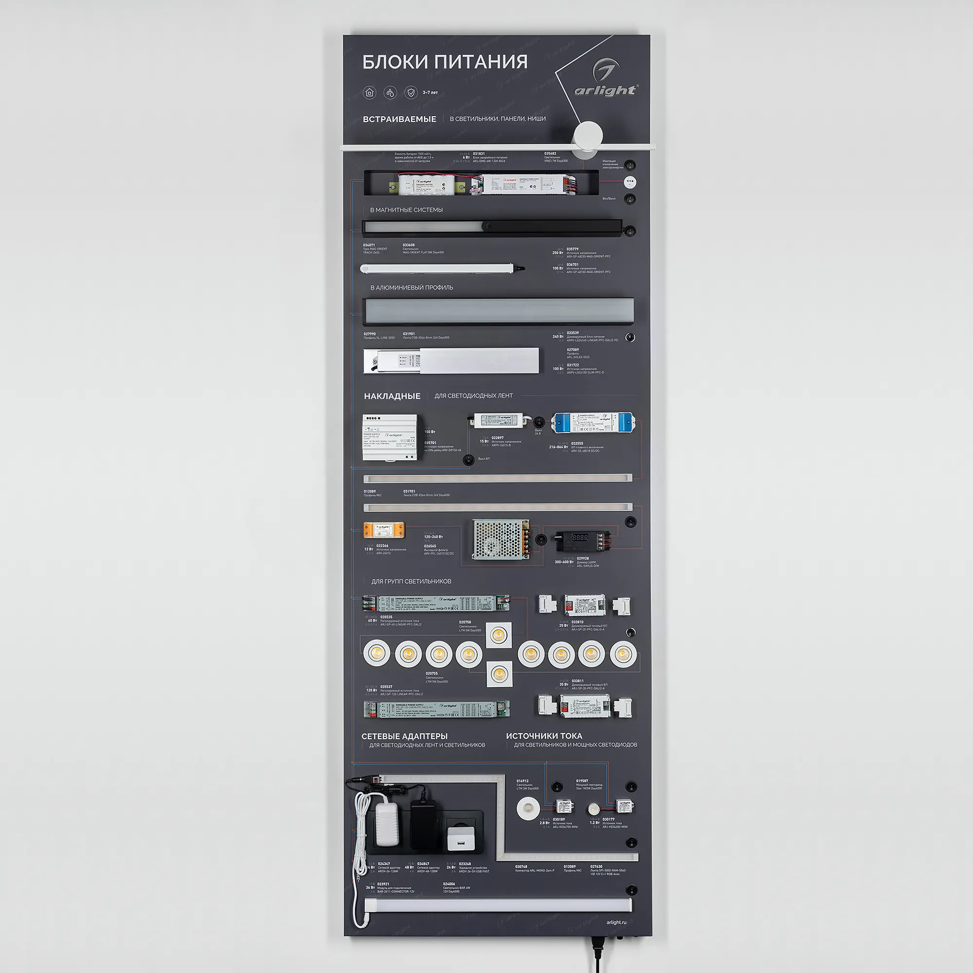 Наши специалисты знают все о продукции Arlight и с радостью помогут Вам выбрать комплектующие к товару "Стенд Блоки Питания ARP-E15-1760x600mm (DB 3мм, пленка) (Arlight, -)", или другие товары из раздела "Блоки питания".