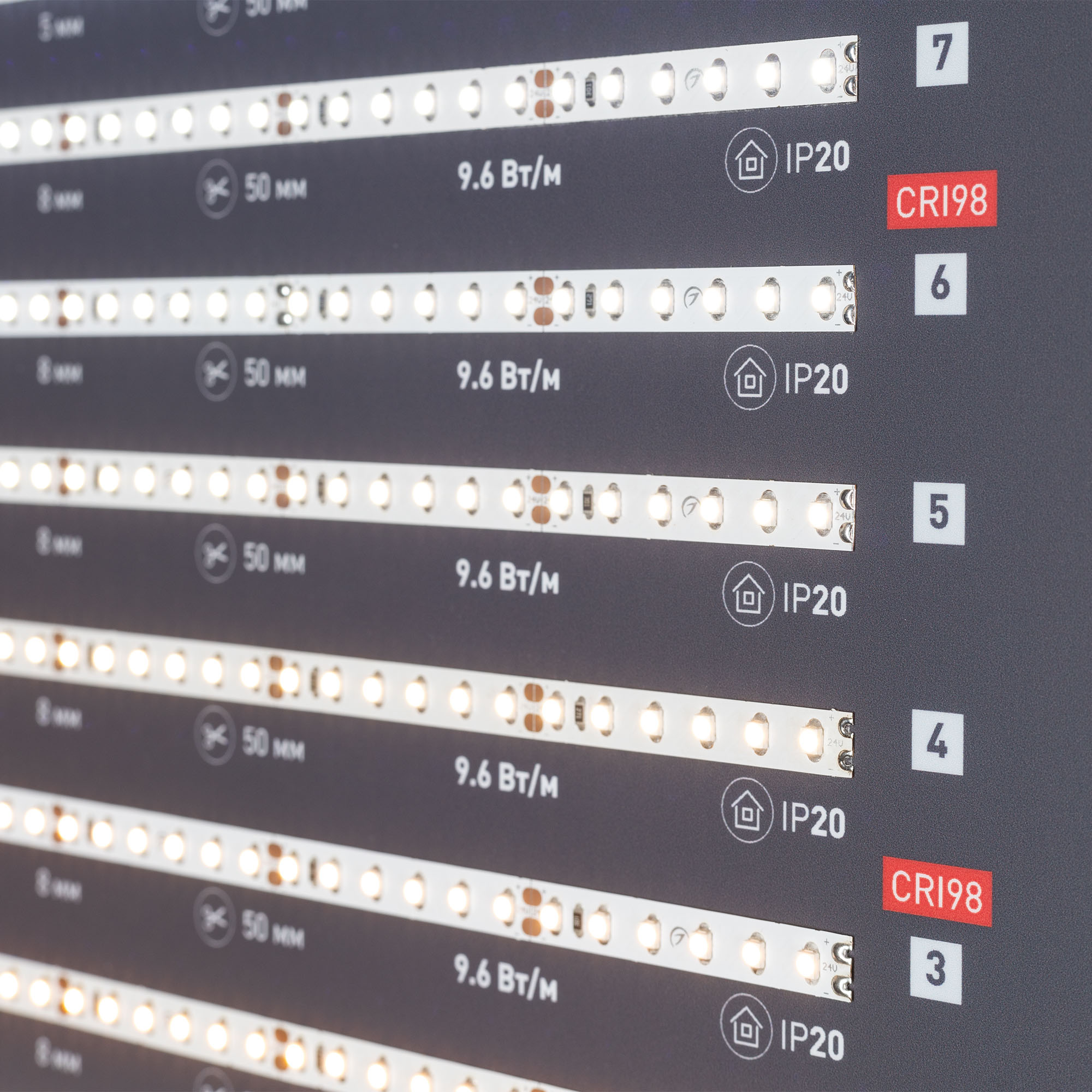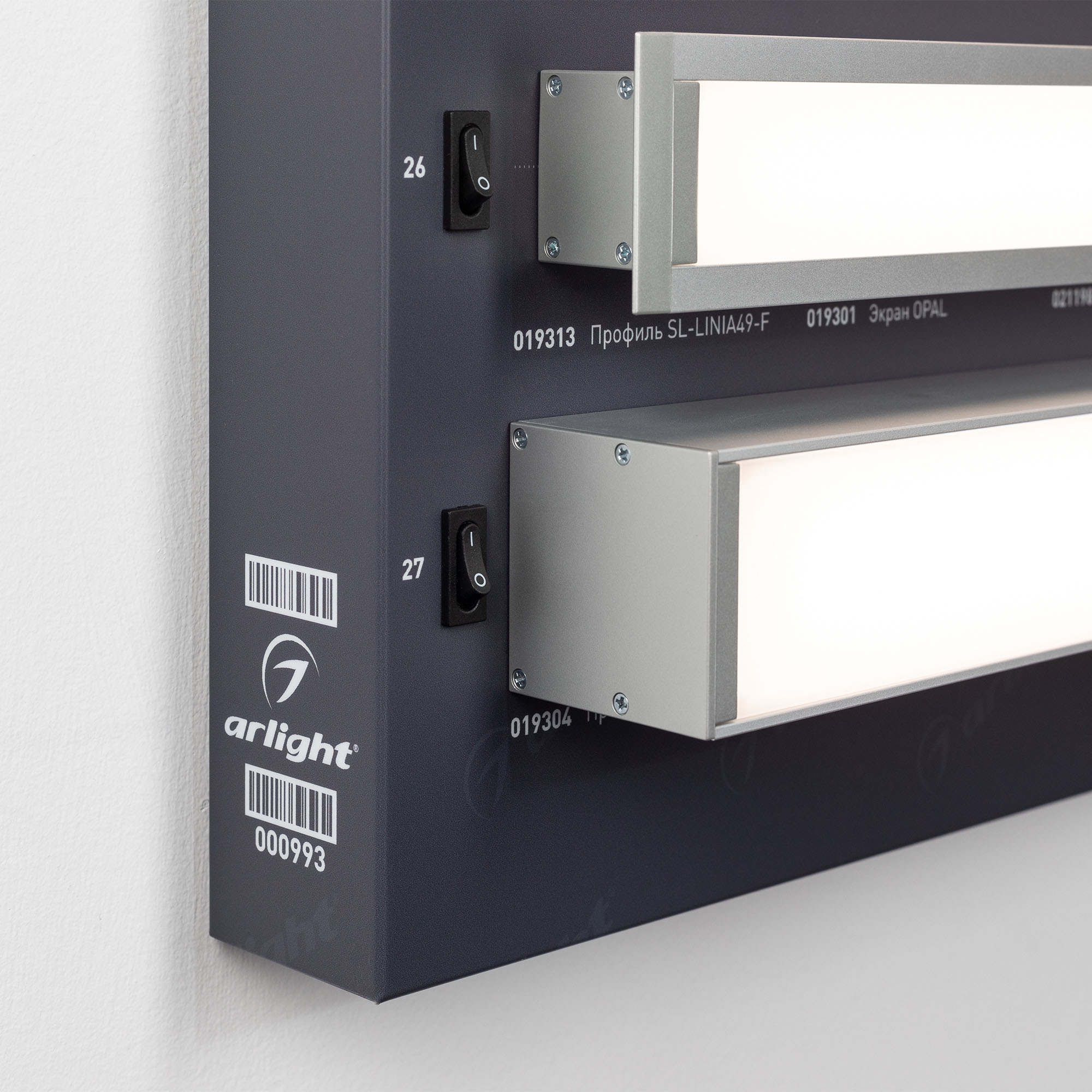 Стенд Светодиодные Ленты Арлайт. Представлена 21 модель лент плюс 3 модели ленты на профели, 6 популярных профилей и управление LUX.