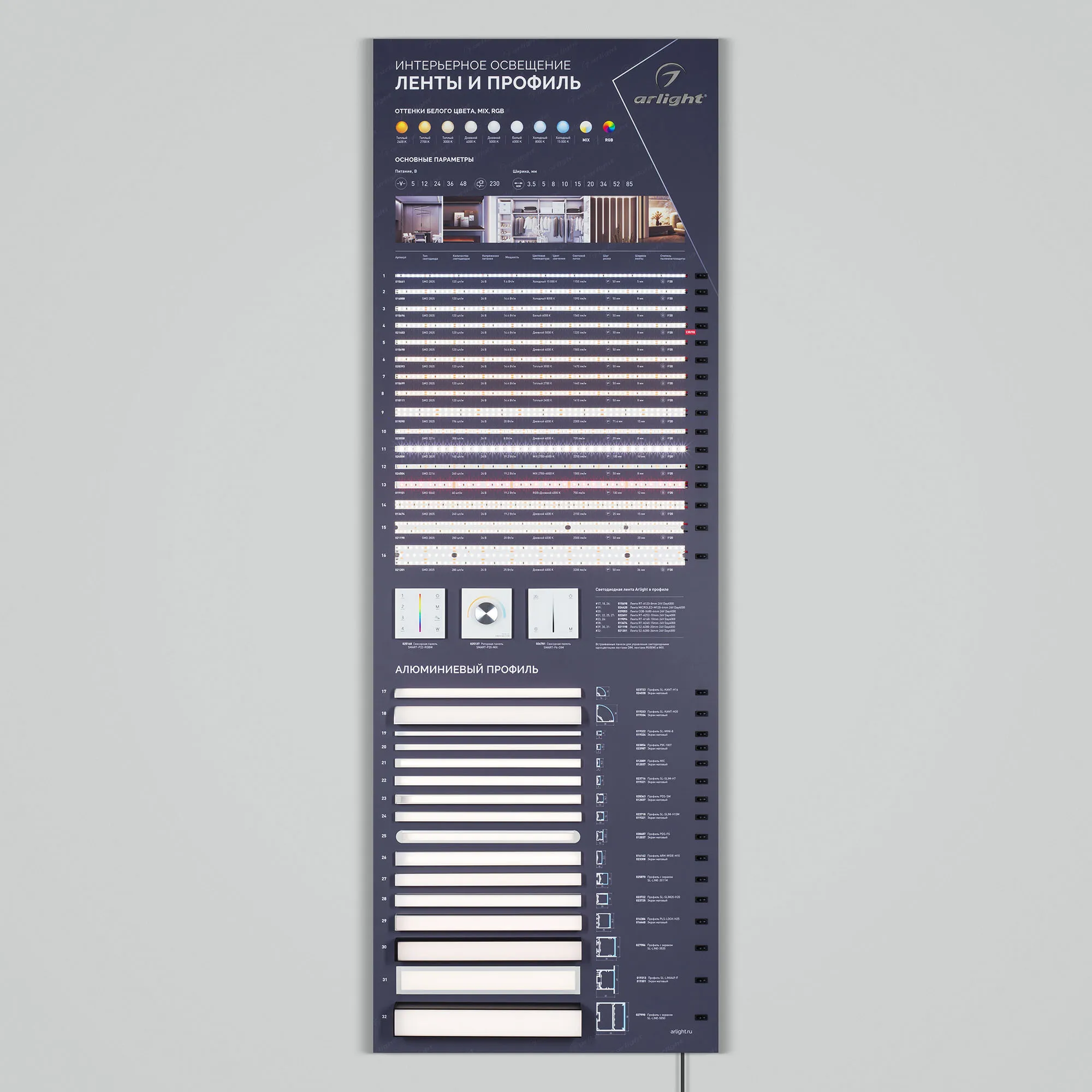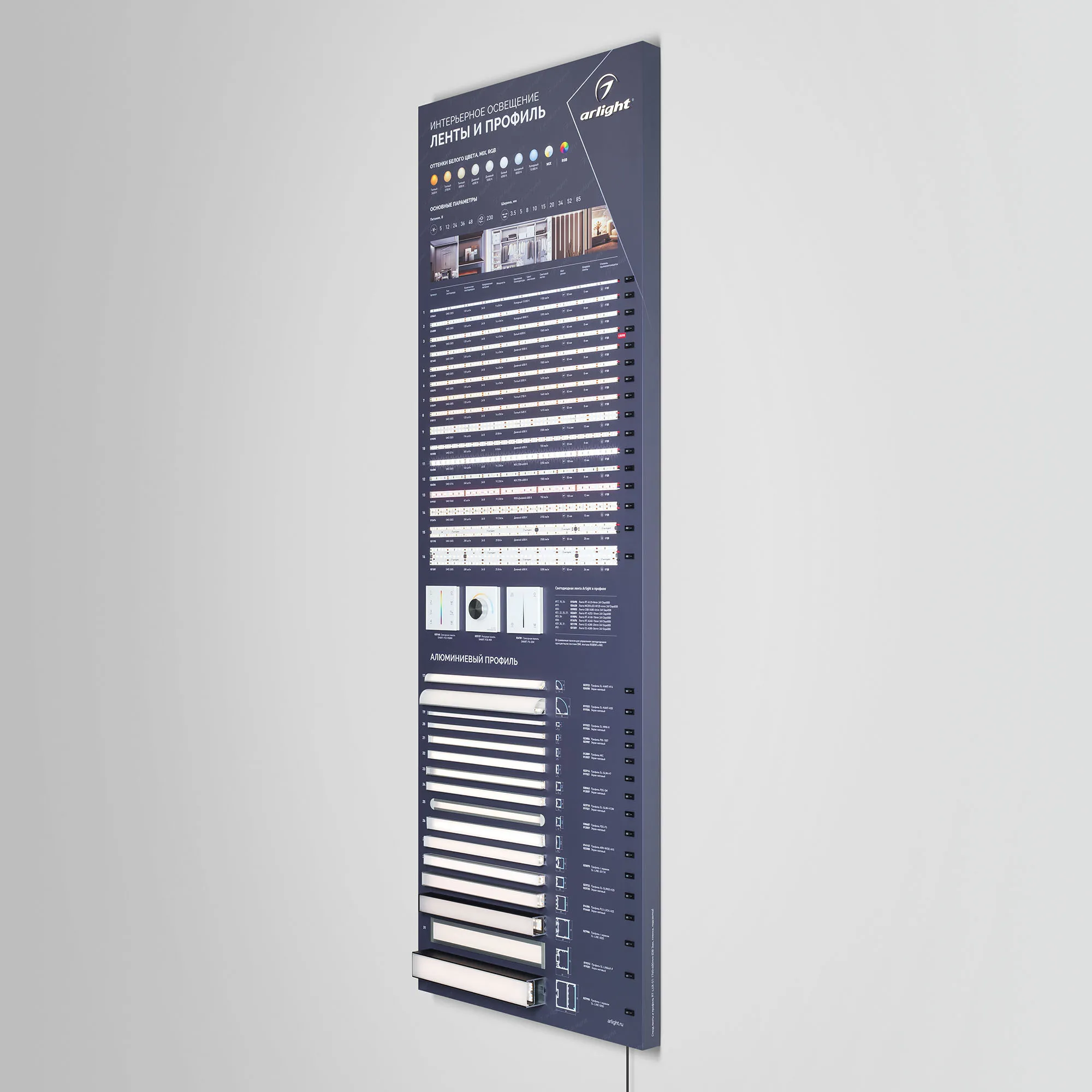 В магазине Мельковский Свет Вы можете купить "Стенд Ленты и Профиль RT-LUX-S1-1760x600mm (DB 3мм, пленка, подсветка) (Arlight, -)"