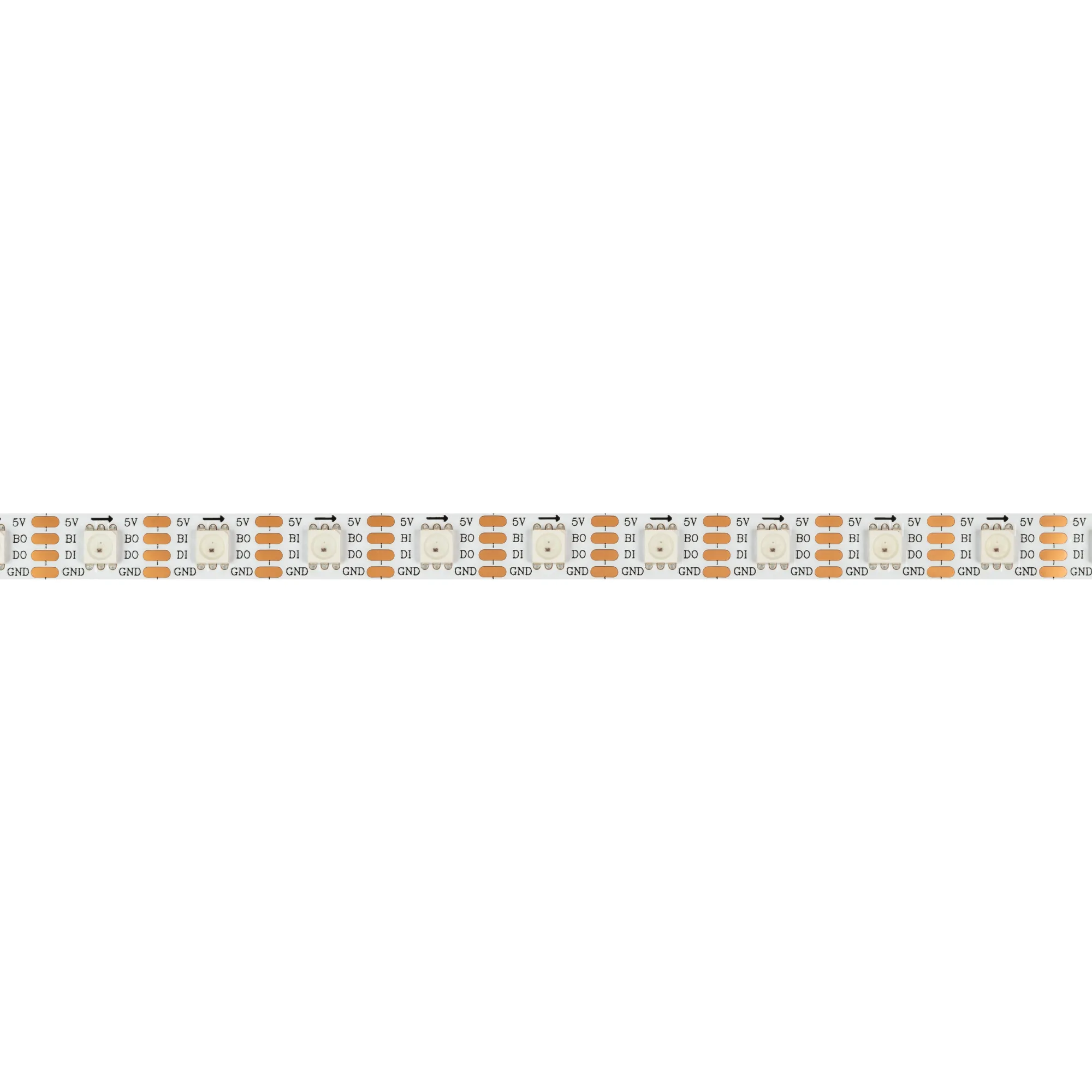 Светодиодная лента SPI серии B60 с микросхемой SK6812. Светодиоды SMD 5060, 60 шт/м, 60 pixels на 1 м (300 pixels на 5 м), 1 pixel = 1 светодиод, белая плата шириной 10 мм, скотч 3М. Цвет RGB, угол 120°. Питание 5 В, мощность 12 Вт/м (60 Вт на 5 м). Размеры 5000x10x2 мм. Мин. отрезок 16.7 мм, 1 светодиод. Цена за 1 м.