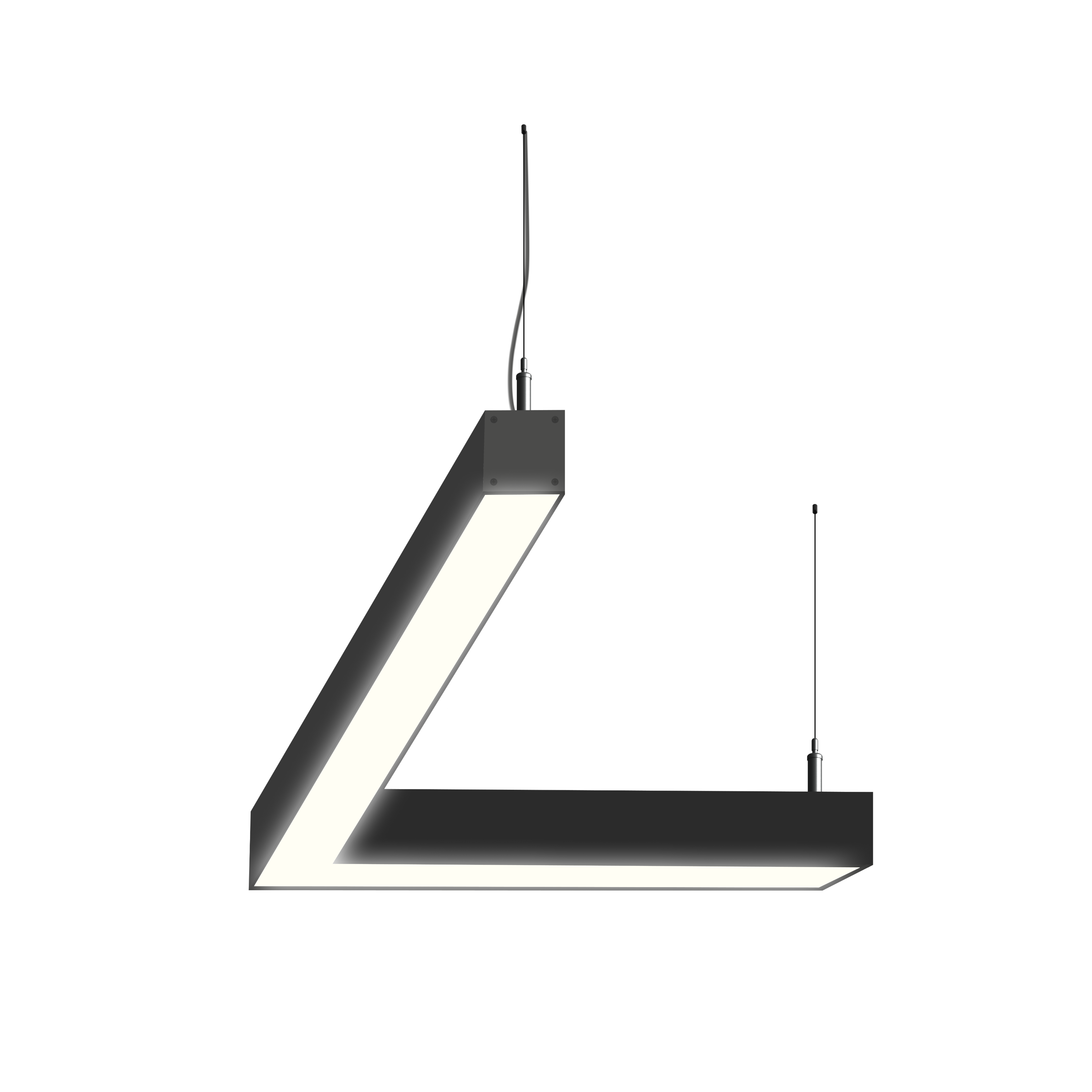 Светодиодный фигурный светильник MS-CORN L-образный 45гр. размер профиля 50х50мм длиной 750х750мм мощностью 30W. Светильник собирается в алюминиевом корпусе с матовым рассеивателем, который дает равномерную засветку по всей площади.