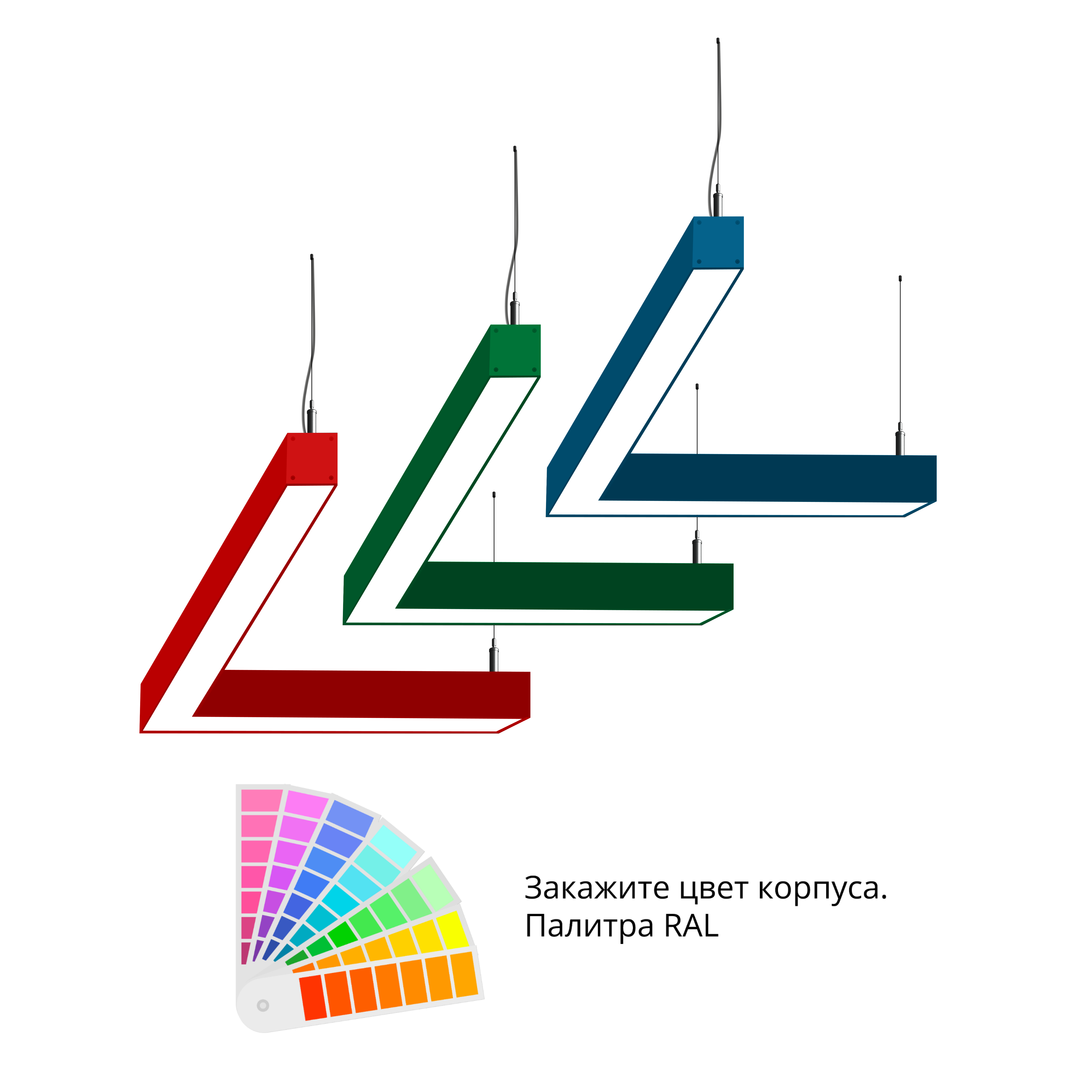 - Светильники доступны в базовых цветах: черный/серый/белый, дополнительно могут быть окрашены в любом цвете палитры RAL (уточняется у менеджера).