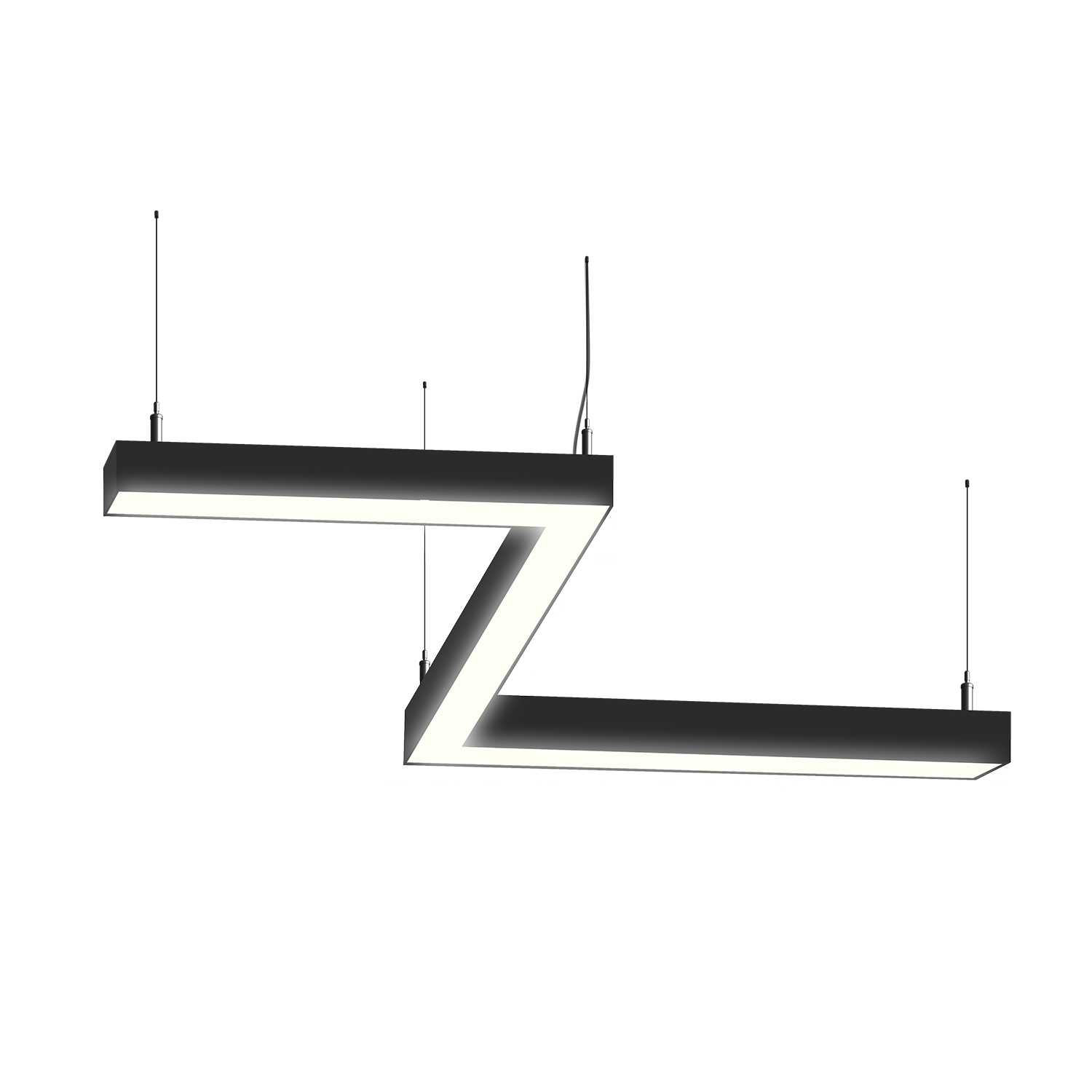 Cветодиодный фигурный светильник MS-ZIG Зигзаг размер профиля 50x50мм длиной 5х500мм мощностью 90W. Светильник собирается из алюминиевого основния с матовым рассеивателем, который дает равномерную засветку по всей площади.