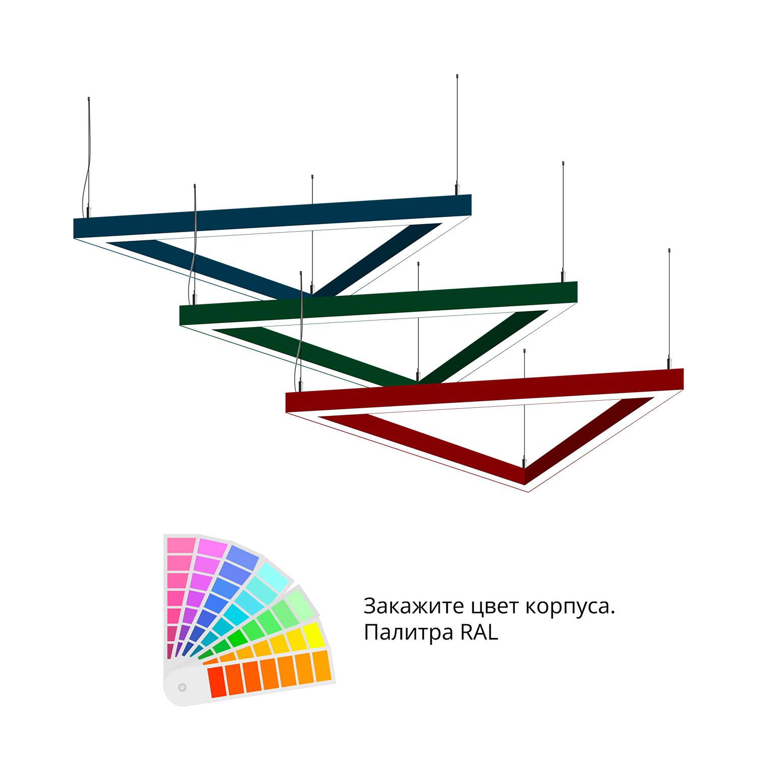 - Светильники доступны в базовых цветах: черный/серый/белый, дополнительно могут быть окрашены в любом цвете палитры RAL (уточняется у менеджера).