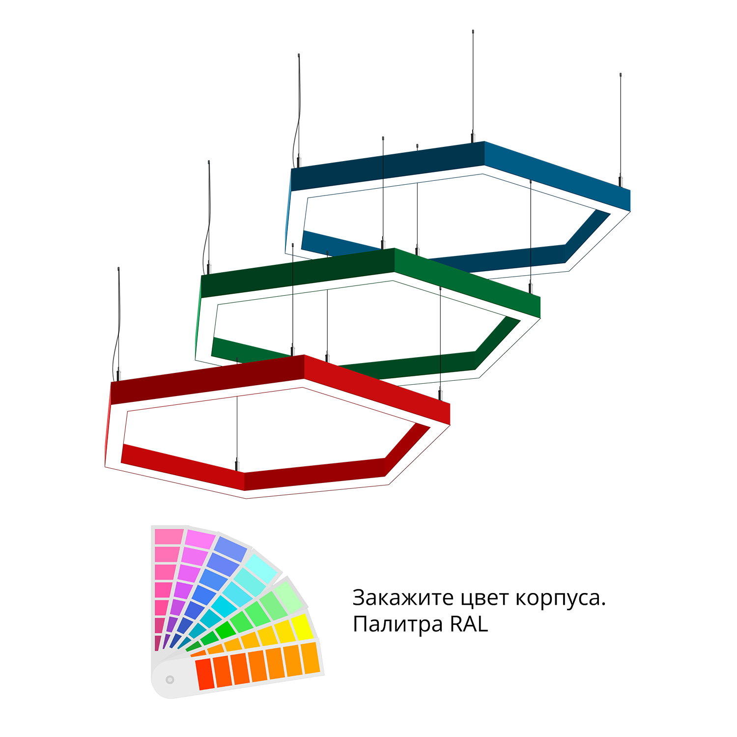 - Светильники доступны в базовых цветах: черный/серый/белый, дополнительно могут быть окрашены в любом цвете палитры RAL (уточняется у менеджера).