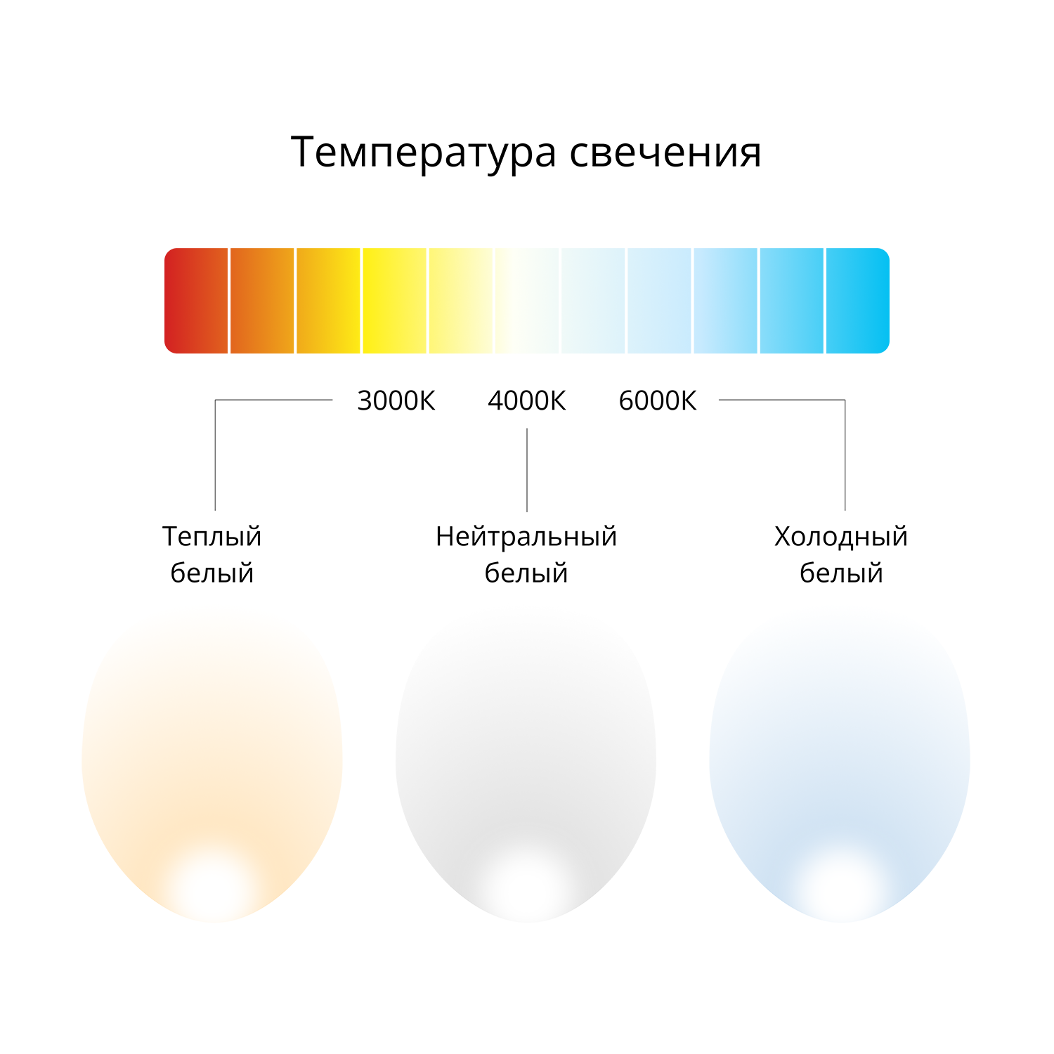 - Цветовая температура от 3000К до 6000К. Стандартное исполнение - 4000К.