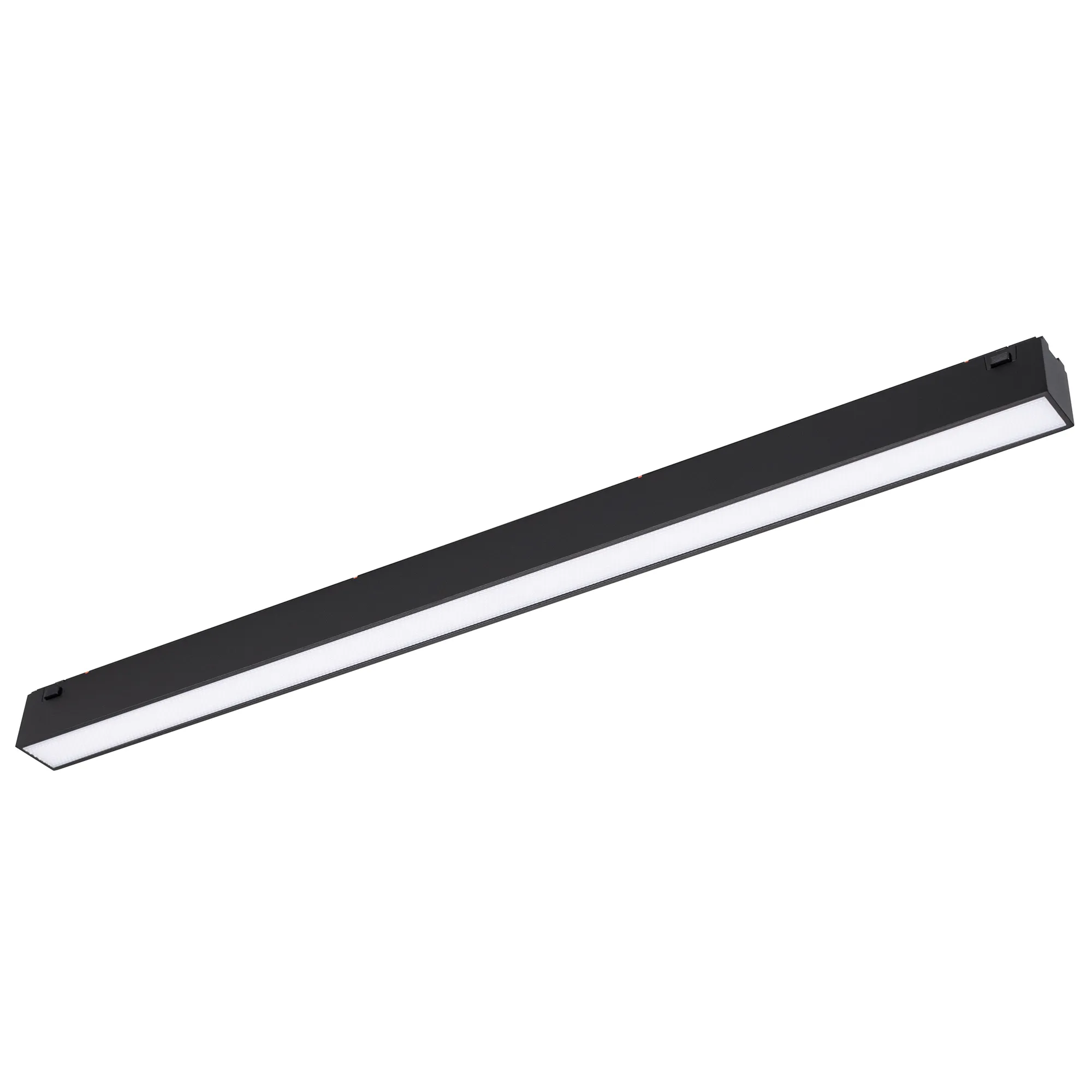 Светильник для магнитных треков MAG-VIBE. Мощность 24 Вт, св. поток 1820 лм, 76 лм/Вт, дневной 4000 K, CRI>90, угол 100°, напряжение питания 48 В. Черный прямоугольный корпус из алюминия, экран поликарбонат, степень защиты IP20. Размер: длина 485 мм, ширина 25 мм, высота 29 мм. Монтаж на трек MAG-VIBE. Пульсация <1%.