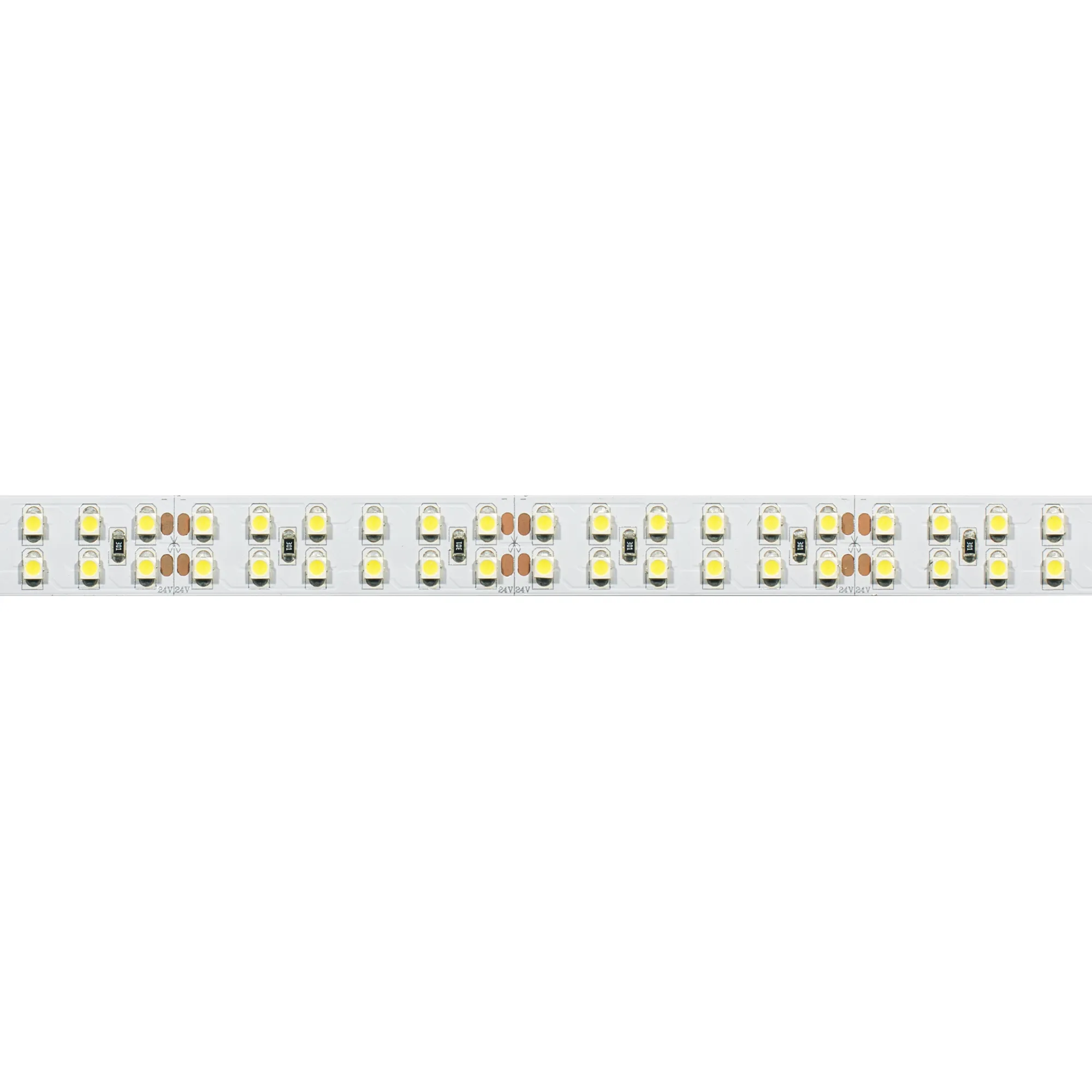 Широкая гибкая лента LUX, светодиоды 2x2 (2 ряда) smd 3528, 240шт/м (1200шт на 5м), белая плата 15мм, скотч 3М. Цвет ТЁПЛЫЙ 2900-3100K. Питание 24В, мощность 19,2 Вт/м (96 Вт на 5м), угол 120°. Размеры 5000x15x2,4мм. Мин.отрезок 50мм (12 LED). Цена за 1м.
