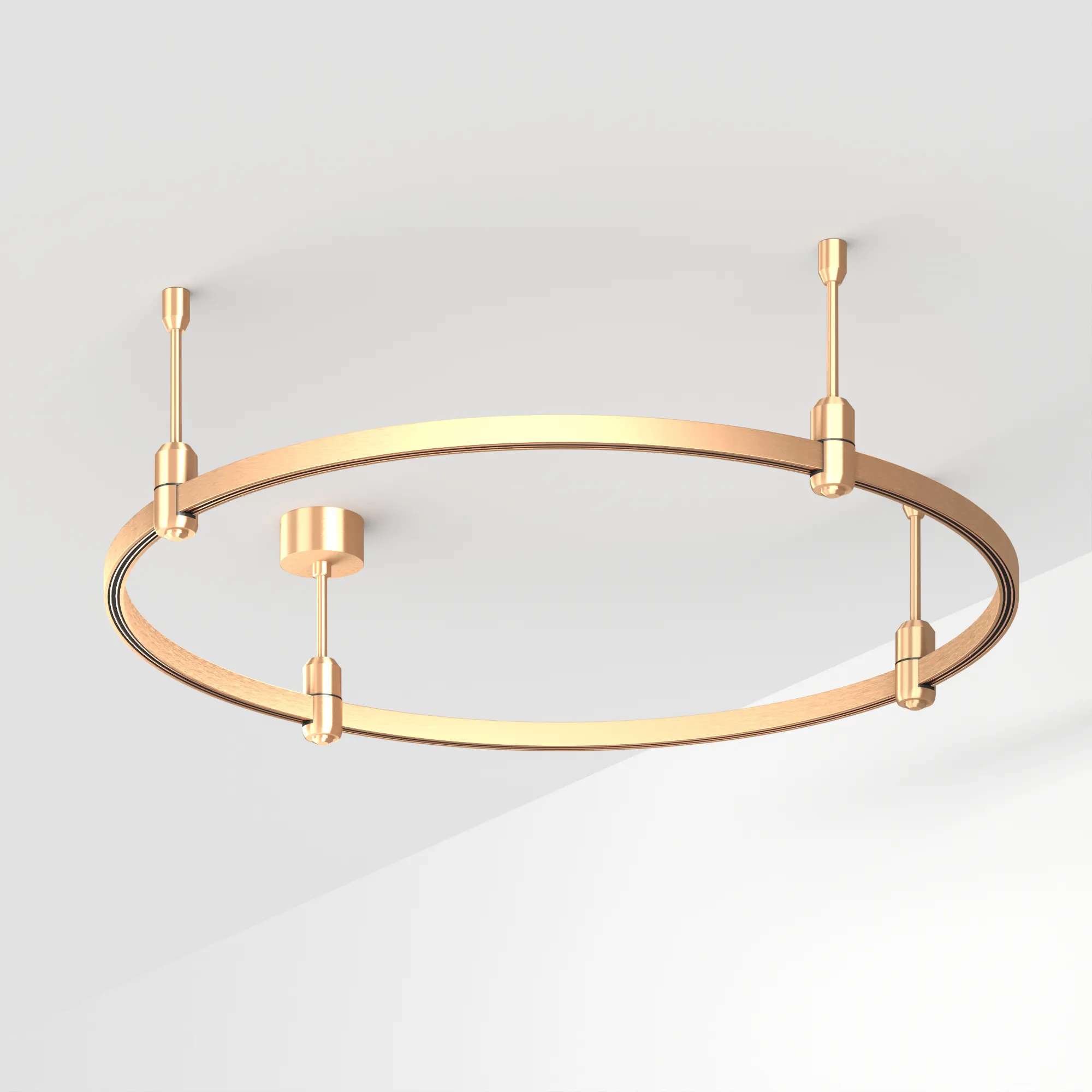 Подвесная конструкция APRIORI, форма круг. В комплекте треки с аксессуарами и жесткими подвесами длиной 200мм. DC48V. Материал алюминий, цвет светлое золото. Размер: диаметр 800мм, высота 22мм. Светильники и источники питания приобретаются отдельно.