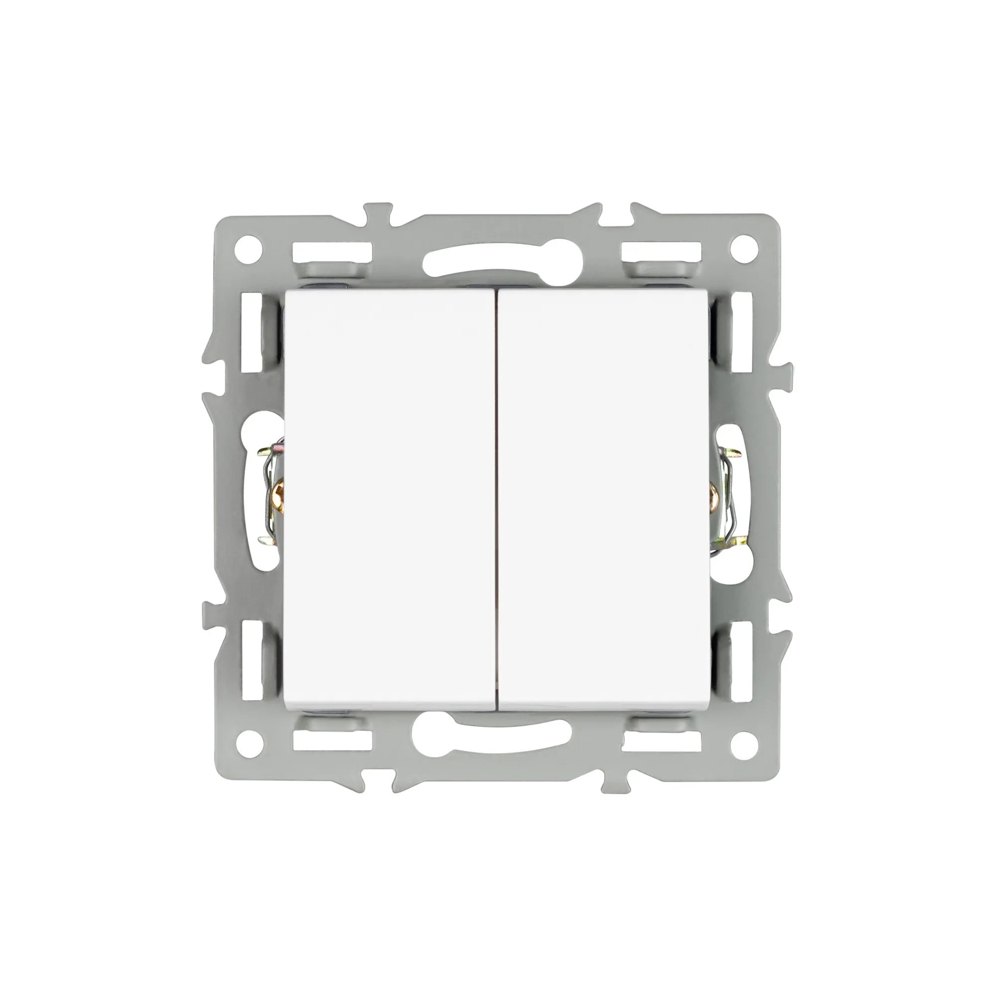 Механизм выключателя клавишный на 1 пост 2 клавиши (непроходной), с суппортом из алюминия. Цвет - белый. Степень пылевлагозащиты - IP20.