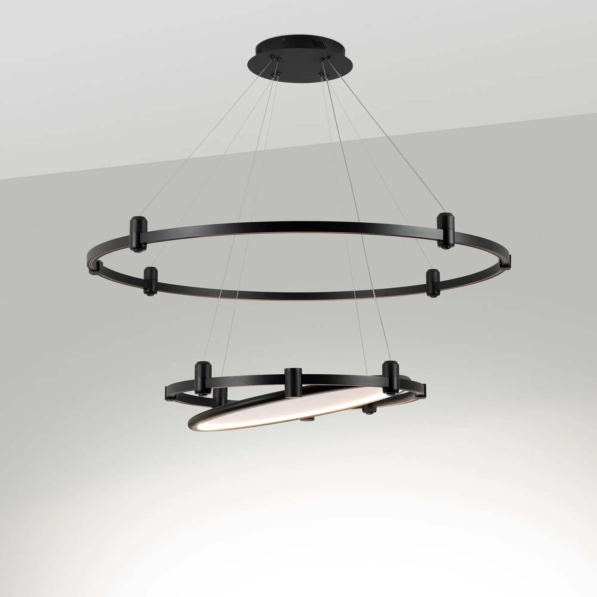 Светильник поворотный для треков APRIORI шириной 17 мм. Мощность 20 Вт, св. поток 491 лм, 23 лм/Вт., дневной 4000 K, CRI>90, угол 160°, напряжение питания 48 В. Черный круглый корпус из алюминия с бежевым акустическим материалом, степень защиты IP20. Размер: длина 620 мм, ширина 580 мм, высота 55 мм. Монтаж на трек APRIORI 17 мм. Угол поворота корпуса 350°.Пульсация <0,04%. Возможно диммирование по ШИМ (PWM) или не адресное управление при использовании диммируемого драйвера Dali, 0-10V, TRIAC.