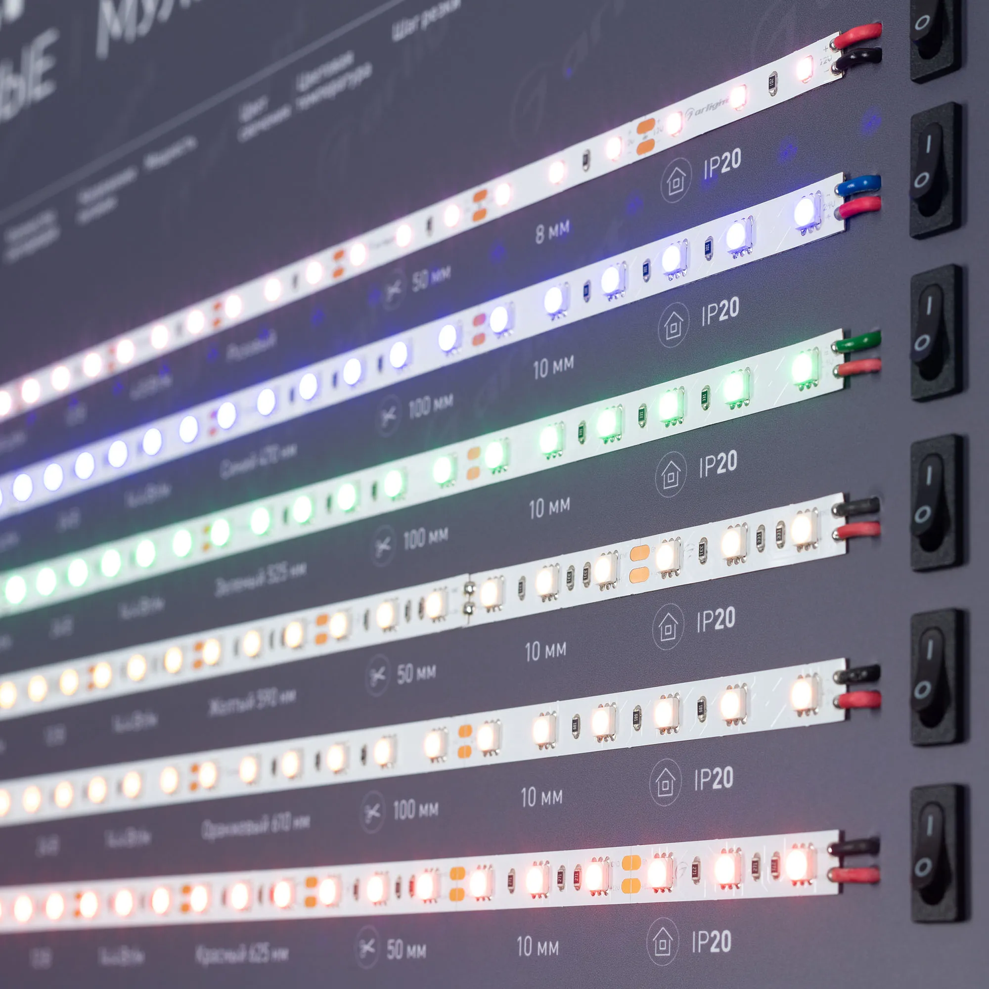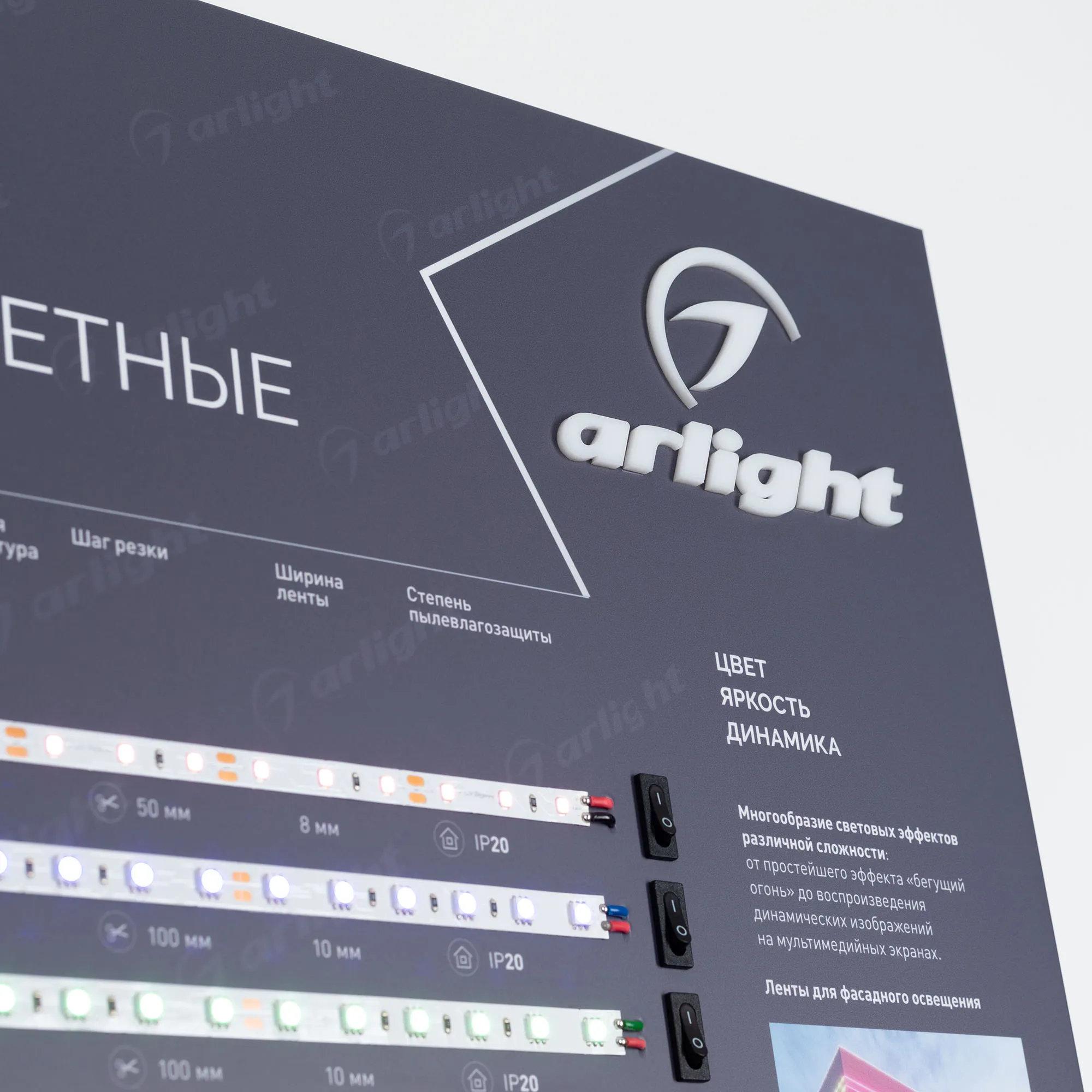 В магазине Мельковский Свет Вы можете купить "Стенд Ленты Мультицветные ARL-RGB-04-830x600mm (230V) (Arlight, -)"