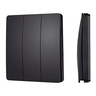 Накладная трехклавишная черная пластиковая панель. Включение/выключение, диммирование трех групп света. Работает на частоте 433Мгц. Совместима с реле и диммерами серии TUYA-***-WF. Не требует питания, имеет встроенный кинетический источник питания. Защита IP67. Рабочая температура -20/+60 Дальность передачи в помещении / на улице - 30м/100м. Габариты панели 86x86x16.5 мм