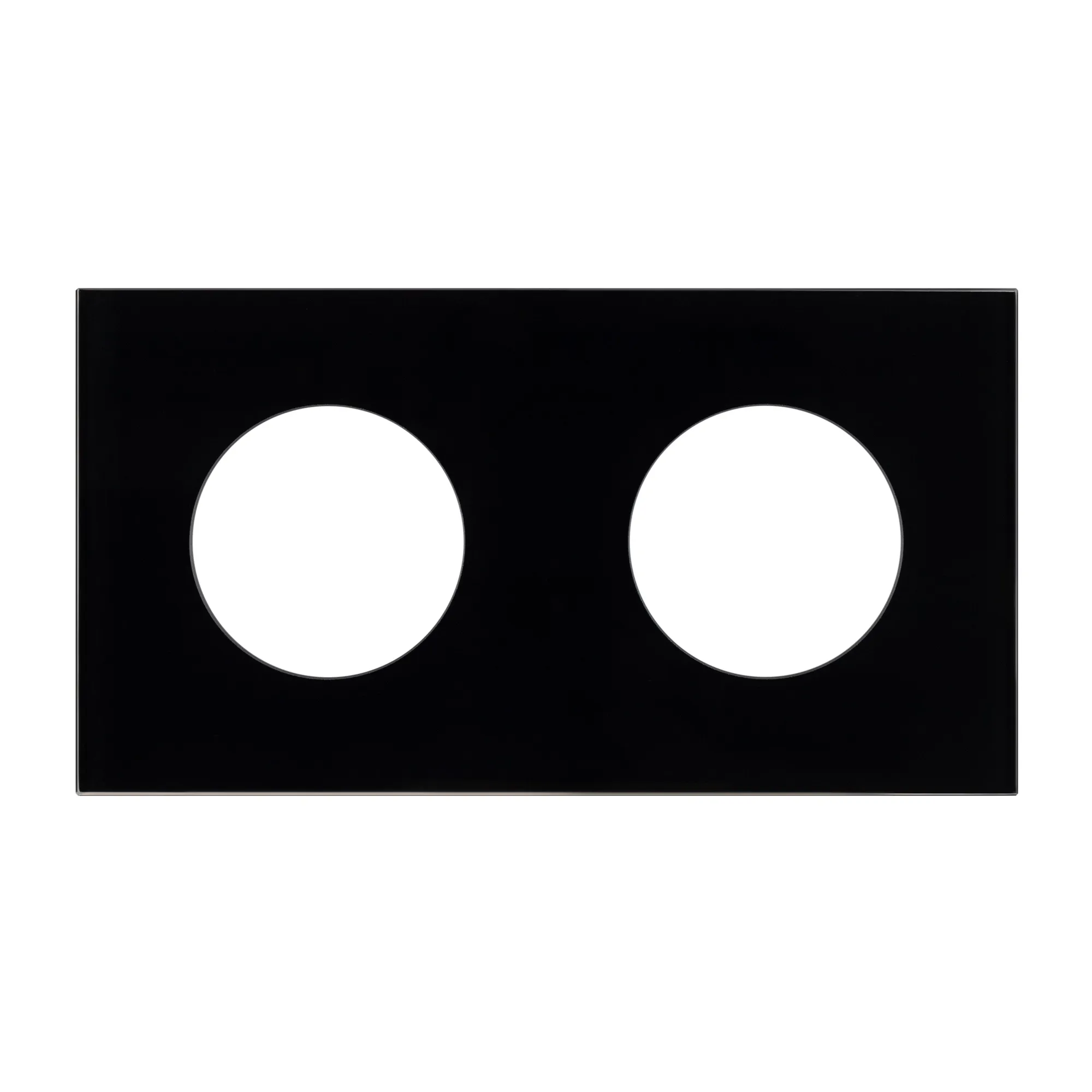 Рамка стеклянная на 2 поста, под встраиваемый механизм. Вырез под функциональную часть круг. Цвет - черный. Ориентации монтажа - горизонтальная.