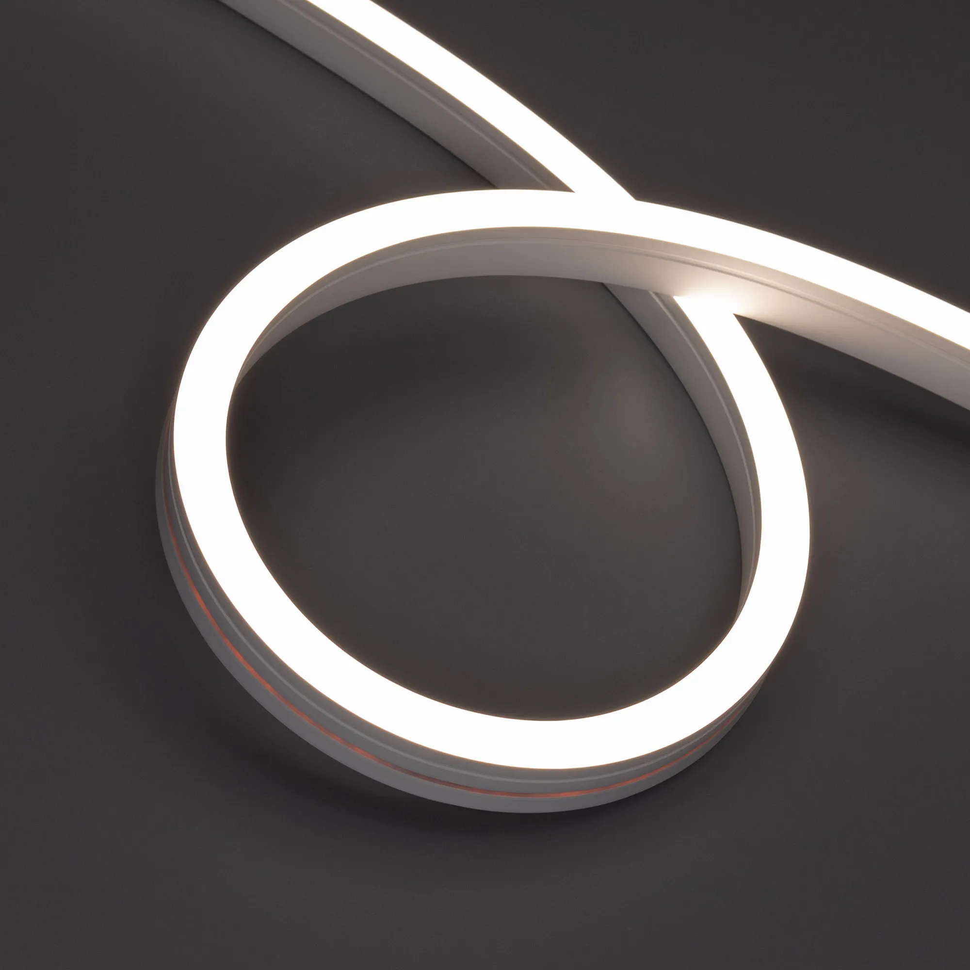 Гибкая герметичная лента (неон серии WAVE), сечение 12×25 мм. Светодиоды SMD 2835 120 шт/м. Цвет свечения ДНЕВНОЙ (4000 К), индекс цветопередачи CRI>90, световой поток 489 лм/м, угол излучения 230°. Мощность 12 Вт/м, питание 230 В. Класс пылевлагозащиты IP67. Размеры 50000×12×25 мм. Мин. отрезок 100 мм. Горизонтальный изгиб SIDE, минимальный радиус изгиба 75 мм. Вывод кабеля с двух сторон перпендикулярно линии сечения неона. Катушка 50 м. Цена за 1 м. Гарантия 5 лет.