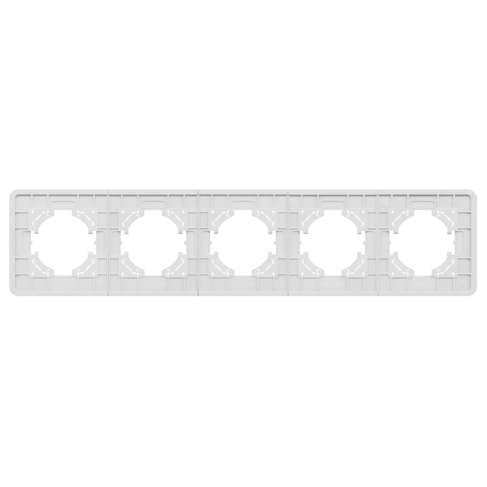 Рамка алюминиевая на 5 постов, под встраиваемый механизм. Цвет - серебристый с Soft-Touch покрытием. Уровень герметичности IP20. Ориентация монтажа - горизонтальная (основным ориентиром служат посадочные выступы для накладки механизма).