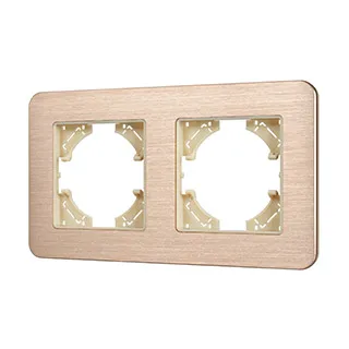 Рамка алюминиевая на 2 поста, под встраиваемый механизм. Цвет - золотой. Уровень герметичности IP20. Ориентация монтажа - горизонтальная (основным ориентиром служат посадочные выступы для накладки механизма).